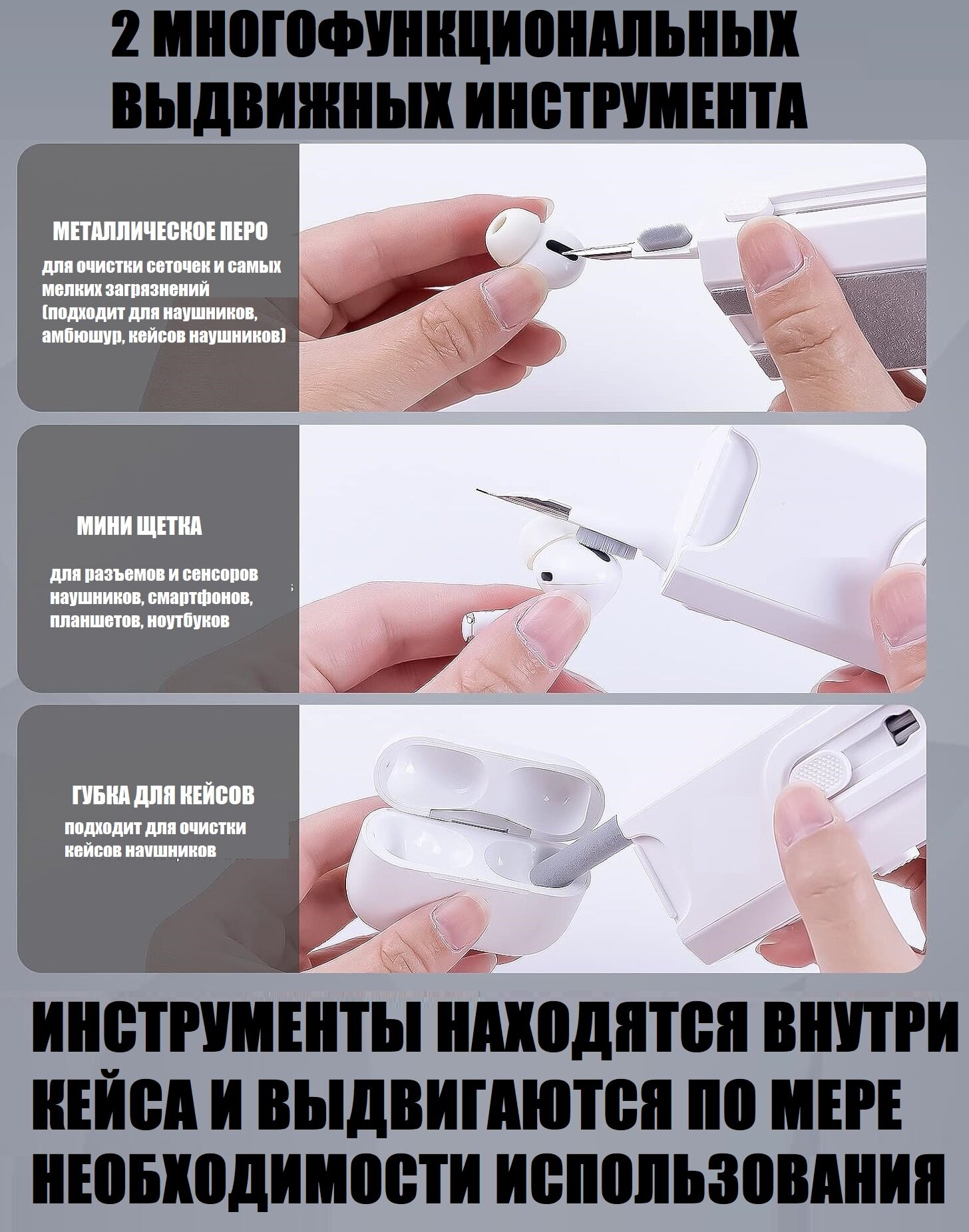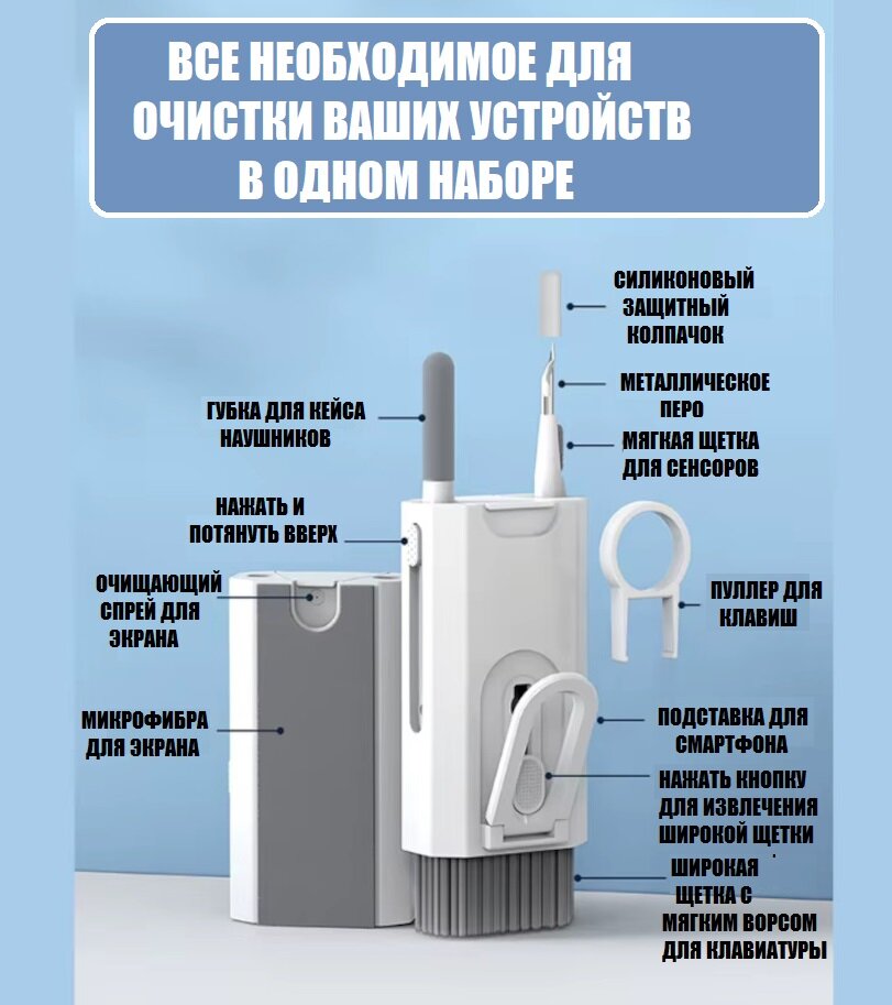 Набор для чистки AirPods, клавиатур, гаджетов и аксессуаров 8 в 1 интересное: