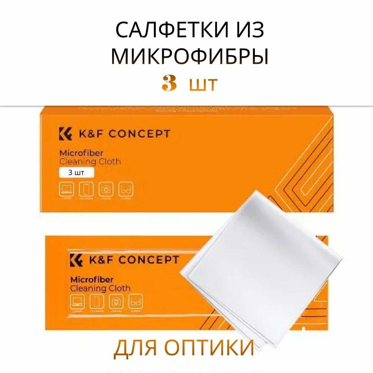 Купить Салфетка для чистки оптики из микрофибры в вакууме 3 шт, 15*15 см K&F Concept