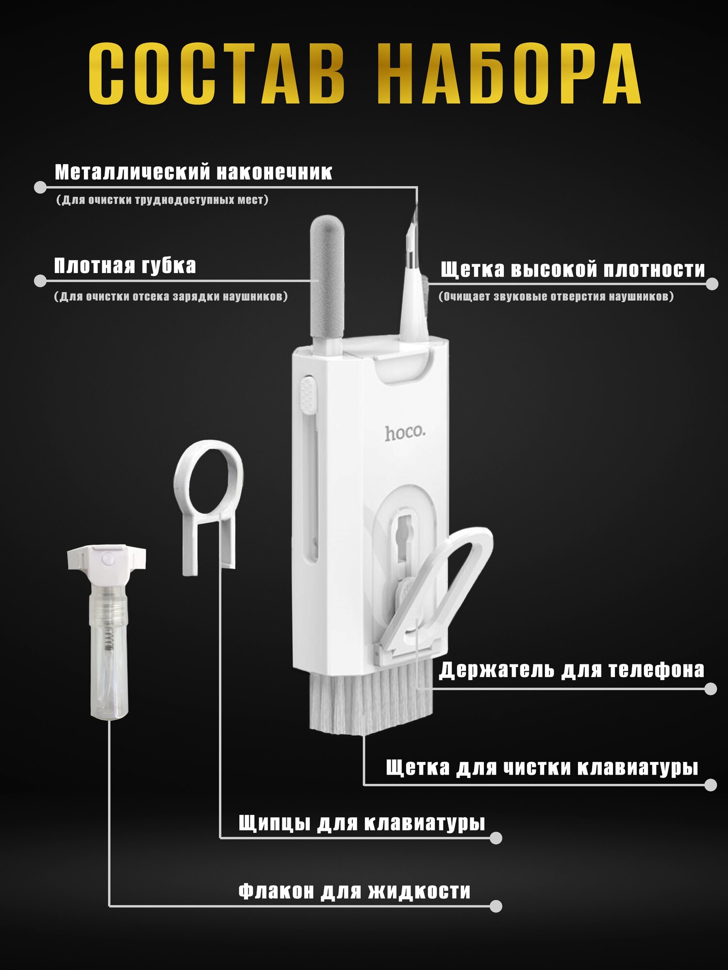 Набор для чистки гаджетов HOCO DI35 8 в 1, белый интересное: