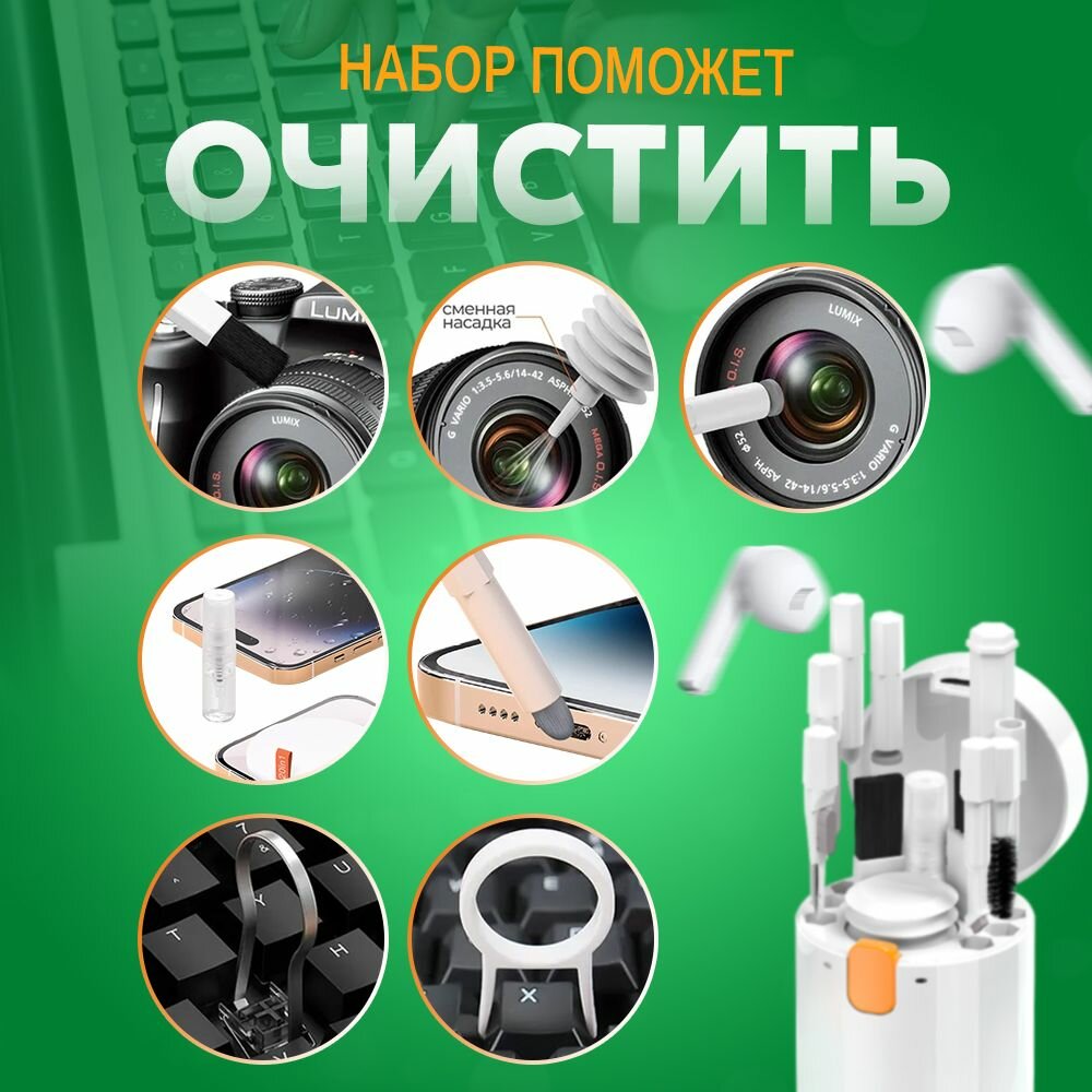 Набор для чистки гаджетов "8 в 1", универсальный, для экрана, клавиатуры, наушников, 85 г