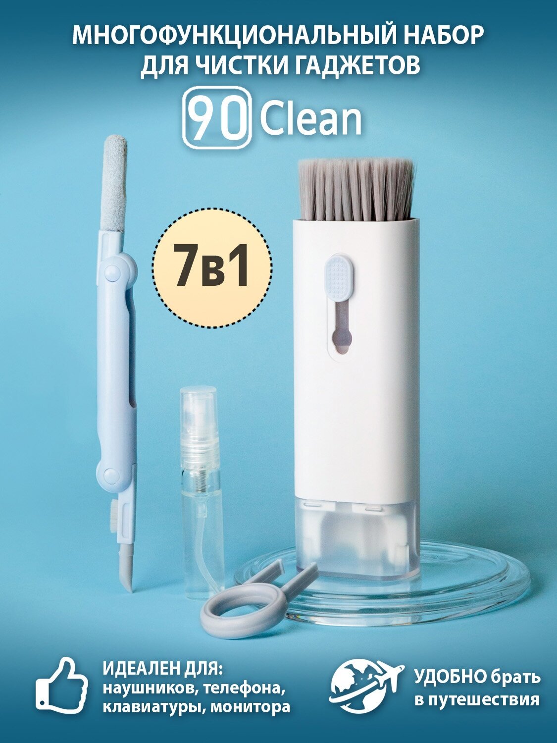 Щетка для электроники многофункциональная для чистки гаджетов, наушников, клавиатуры, телефона, набор 7 в 1 интересное:
