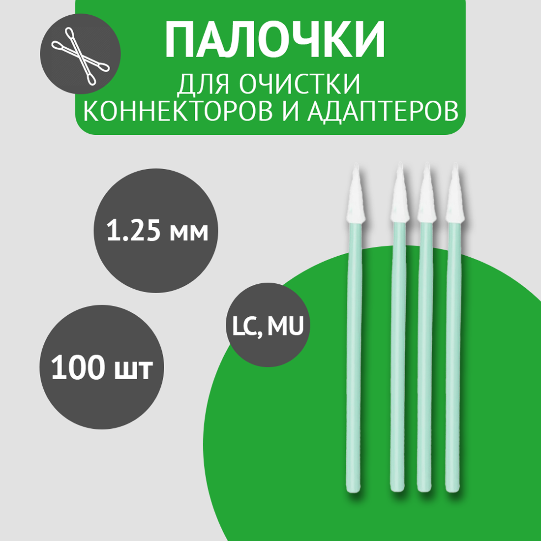 Палочки для очистки коннекторов (LC, MU), адаптеров, печатных плат и линз, нетканый материал,(1.25мм) 100 шт. в упаковке интересное: