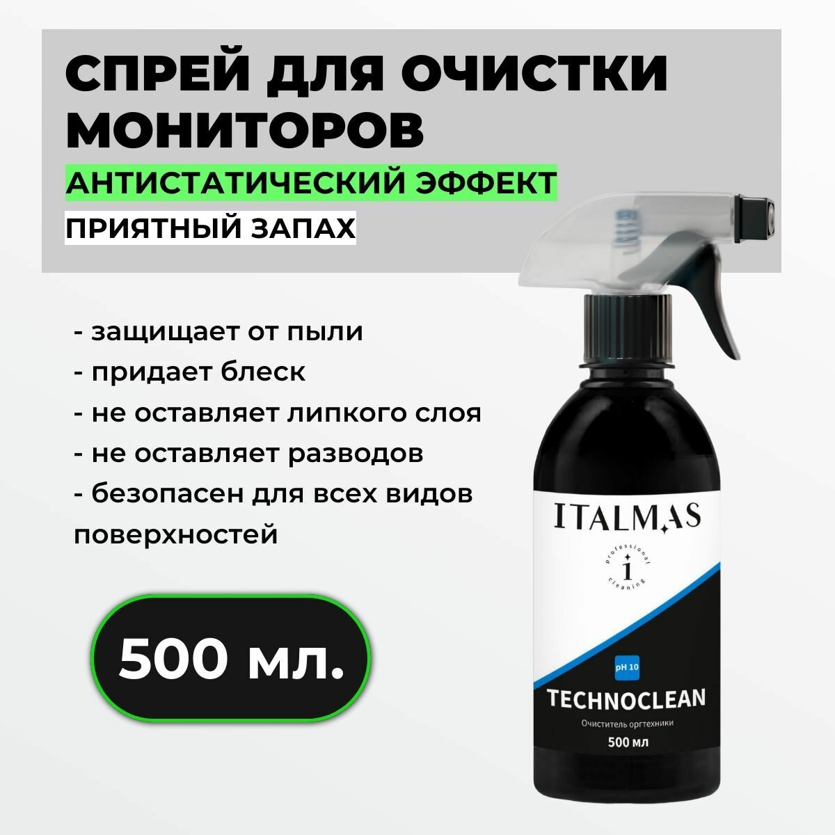 Ниже Вы можете прочитать отзывы на Спрей для электроники Italmas Technoclean 500 мл / средство для монитора, экрана телефона профессиональное, универсальное, ознакомится с подробными характеристиками, посмотреть интересные обзоры и фотографии на Спрей для электроники Italmas Technoclean 500 мл / средство для монитора, экрана телефона профессиональное, универсальное.
