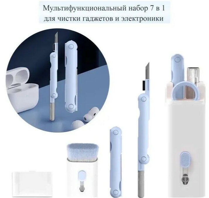 Щетка для клавиатуры и наушников 7 в 1, многофункциональный набор для чистки гаджетов синий интересное: