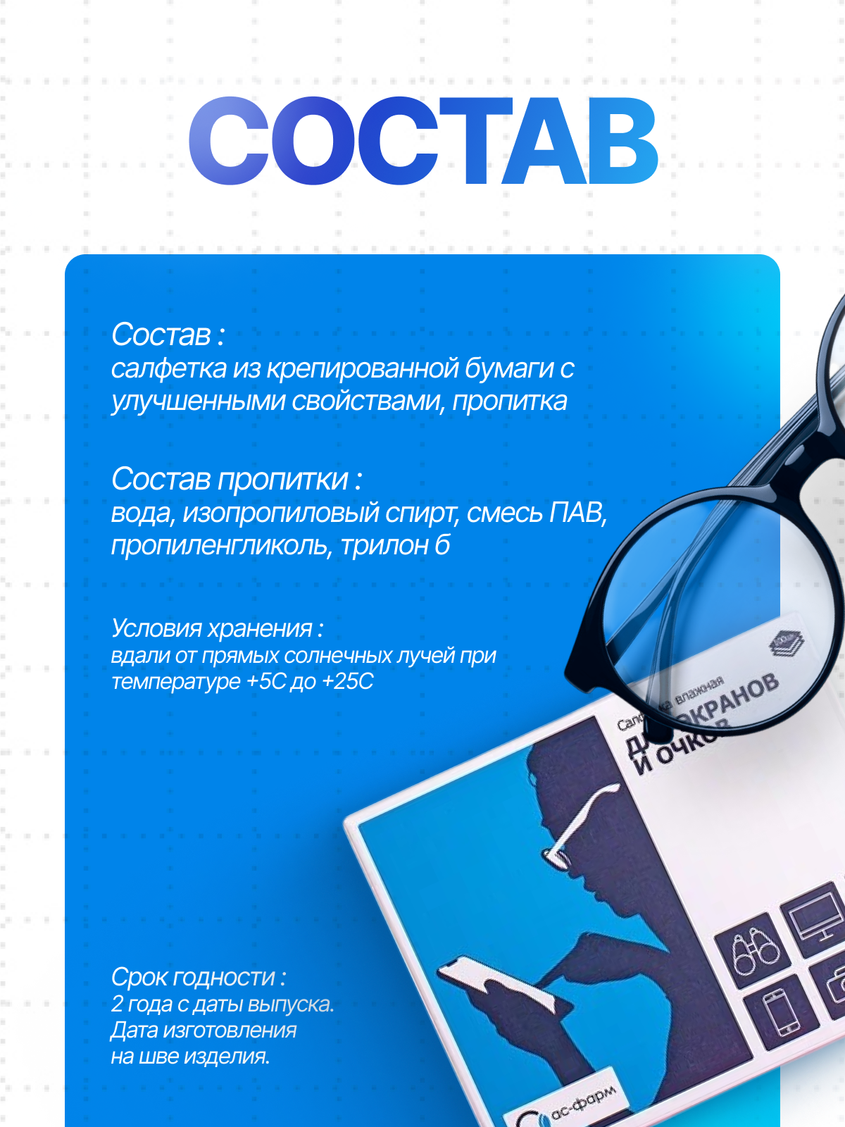 Салфетки для мониторов, экранов, телефона, очков, оргтехники и оптики, «АС-Фарм», 80 шт. интересное: