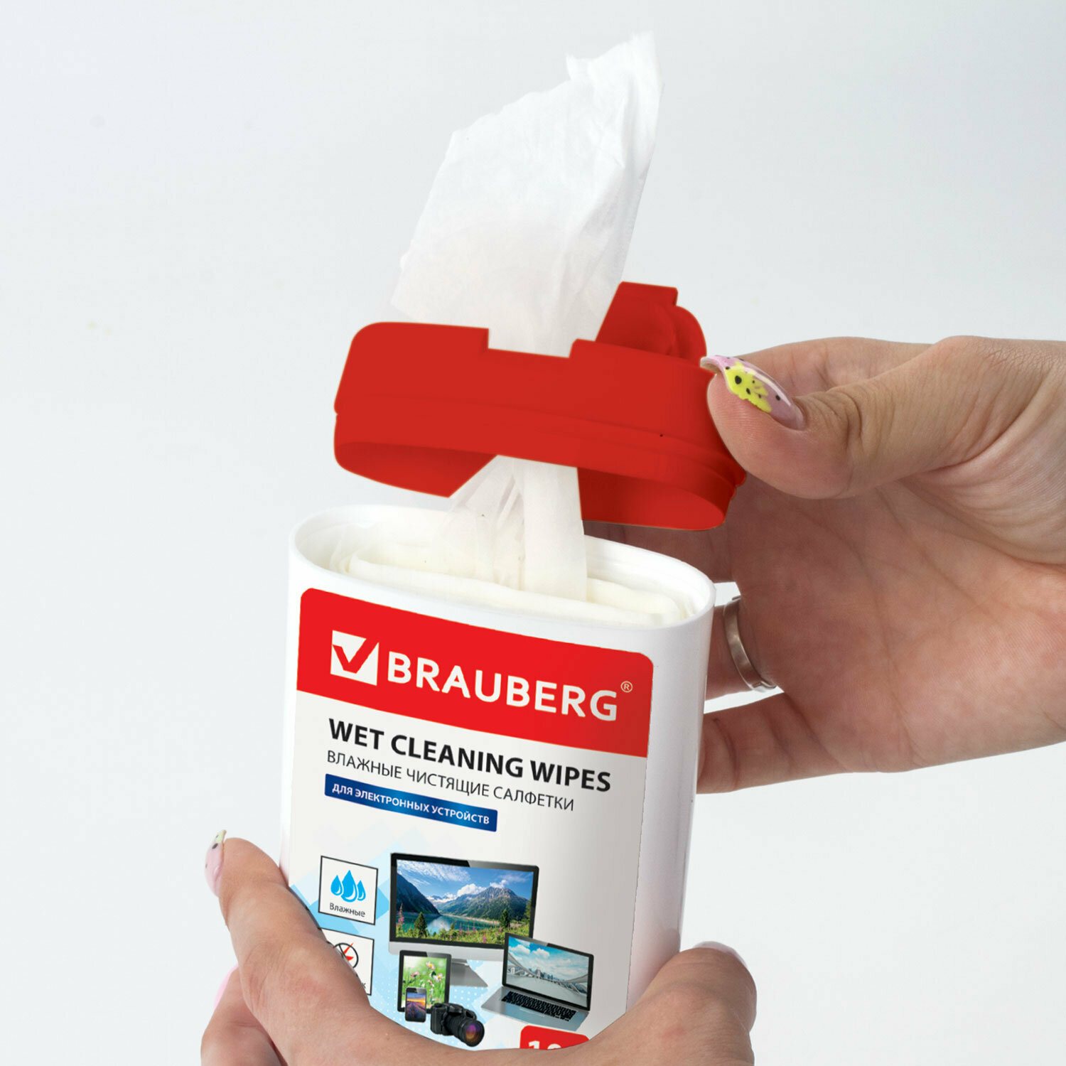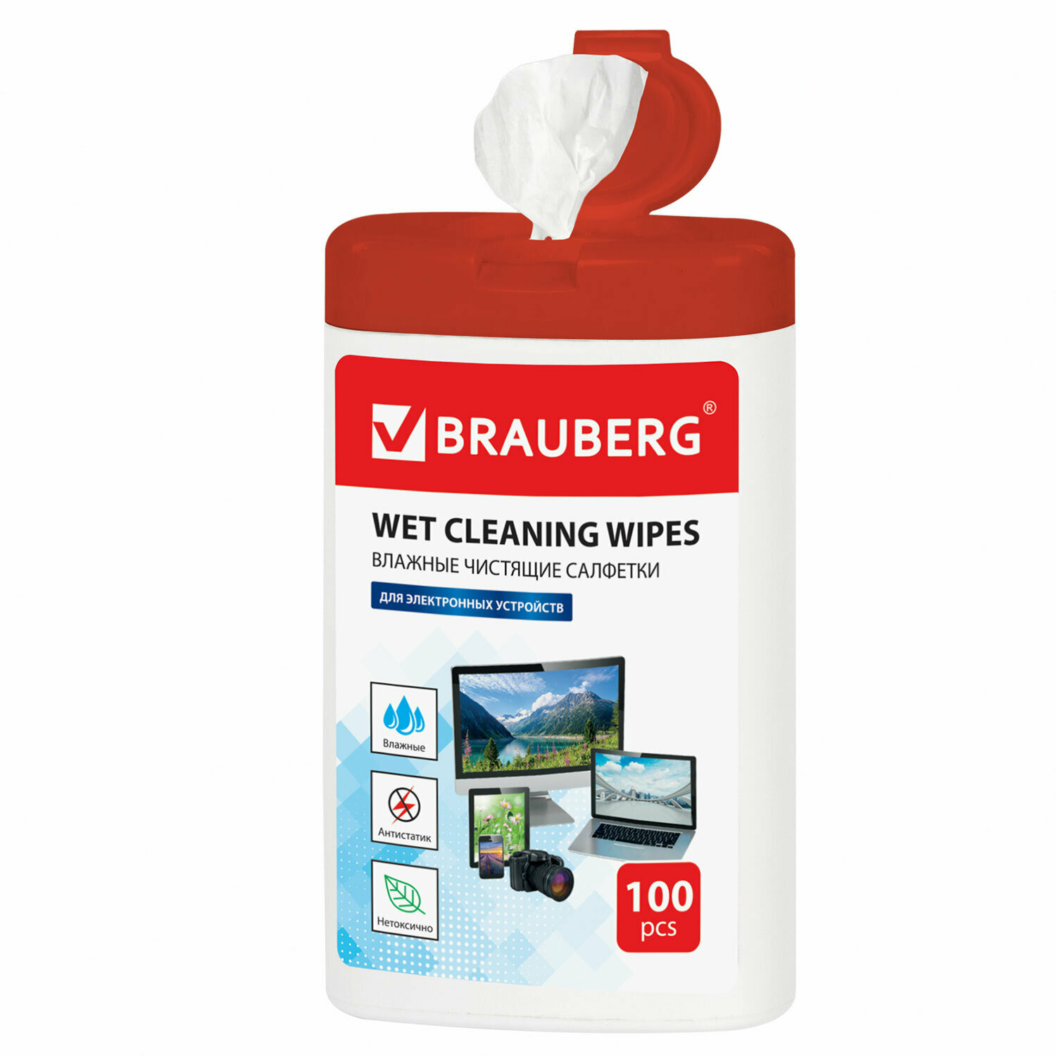 Салфетки для электронных устройств универсальные Brauberg, компактная туба 100 шт, влажные, 512810 интересное: