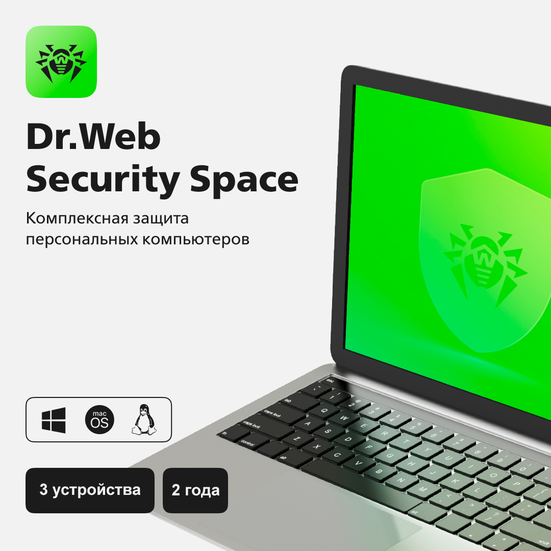 Купить Антивирус Dr.Web Security Space, лицензия на 2 года на 3 устройства, право на использование