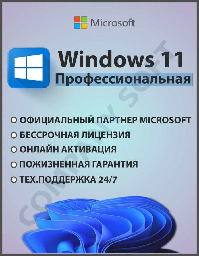 Microsoft Windows 11 PRO Бессрочная лицензия с привязкой к устройству, электронный ключ активации для x32/x64. интересное: