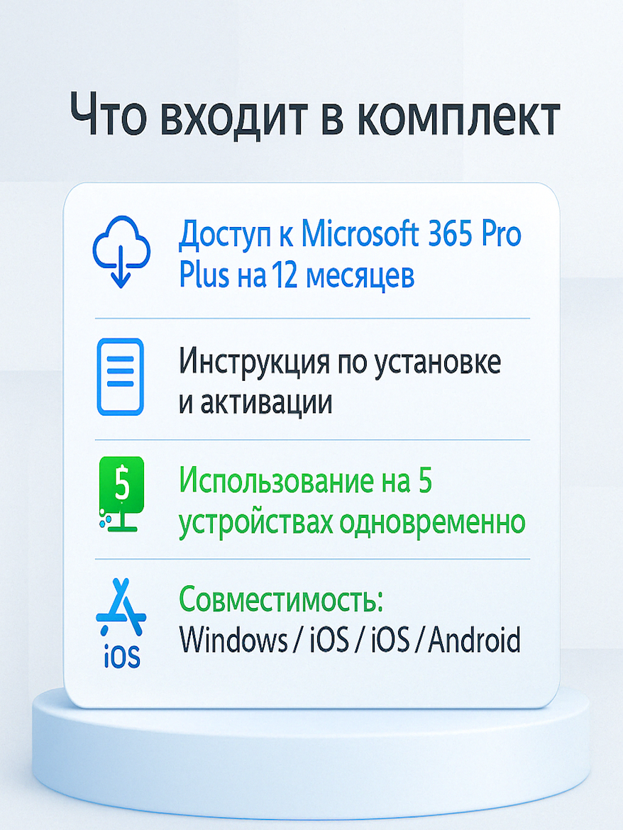 Microsoft Office 365 Professional Plus , лицензия на 12 месяцев, 5 устройств(Windows/MacOS/Android/iOS) интересное: