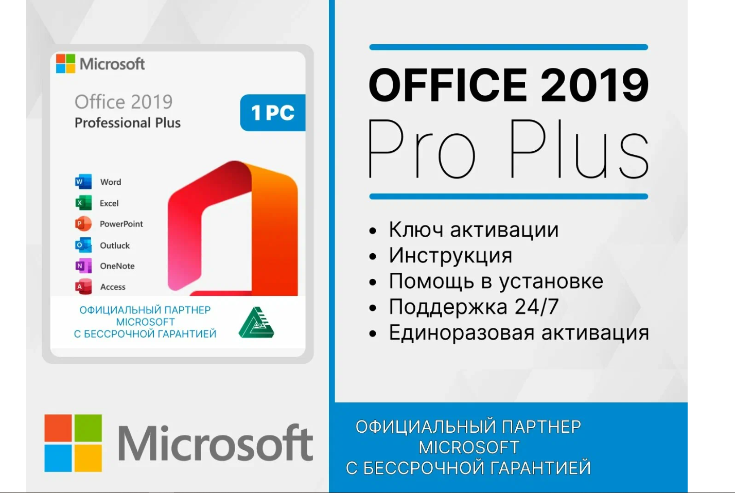 Купить Office 2019 Professional Plus Microsoft лицензионный ключ активации онлайн, для ноутбука/компьютера