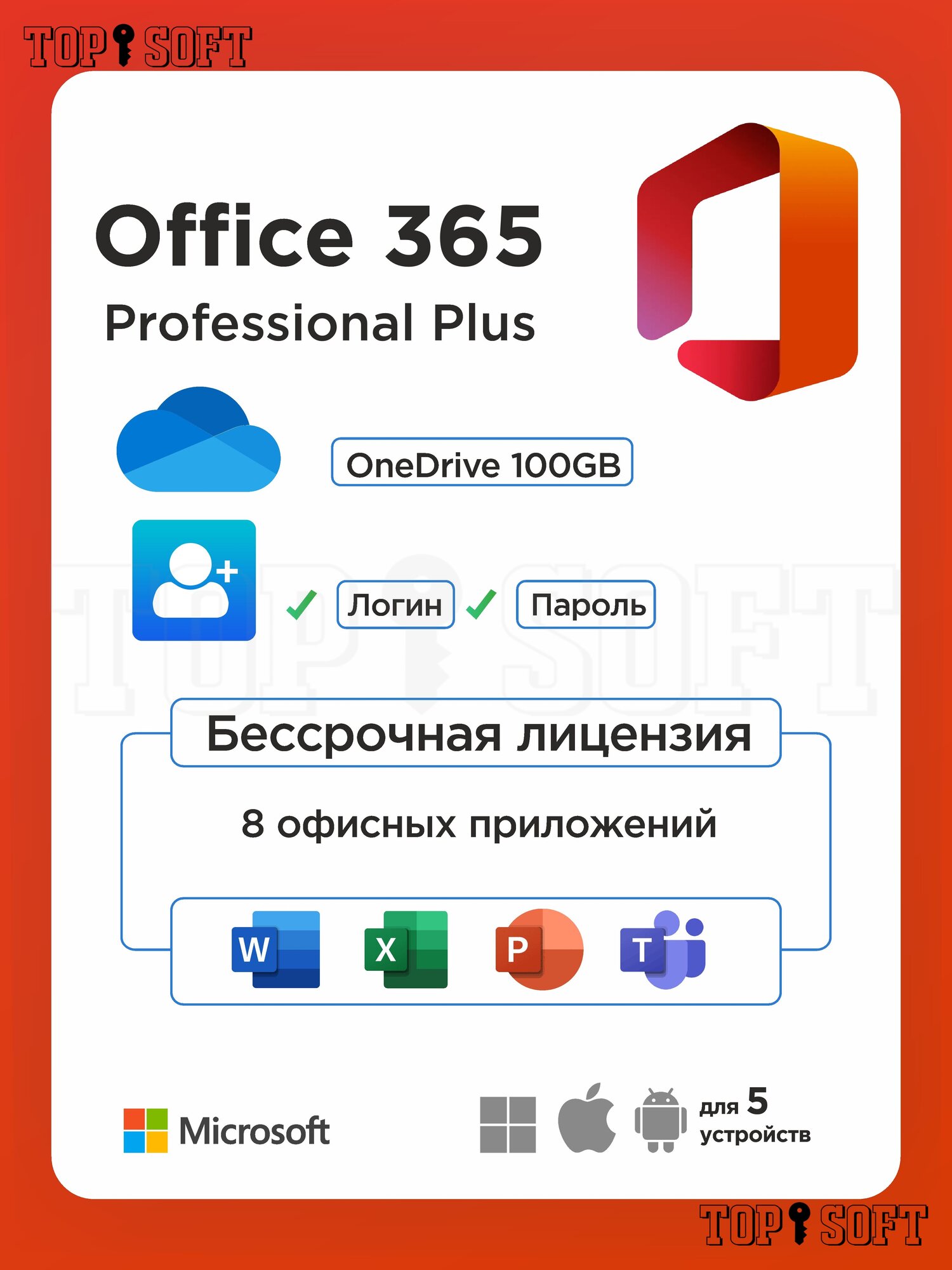 Microsoft Office 365 Pro Plus + OneDrive 100GB / На 5 устройств / Для Win - MacOS - Android - iOS / 12 месяцев интересное: