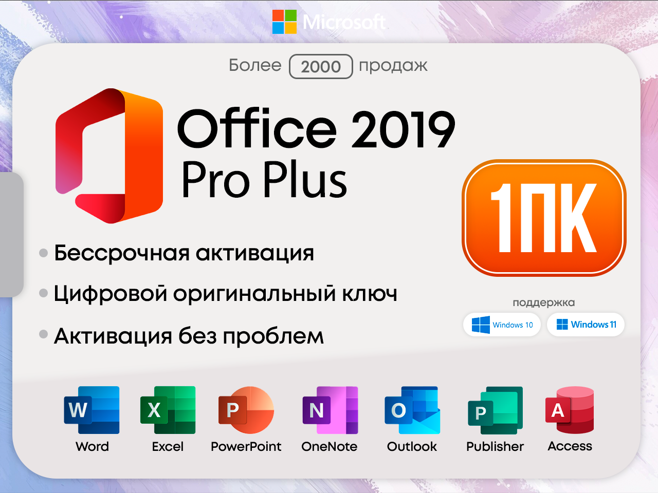 Купить Microsoft Office 2019 Professional Plus Retail | Электронный ключ | Бессрочный | 1 ПК | Без привязки к учетной записи