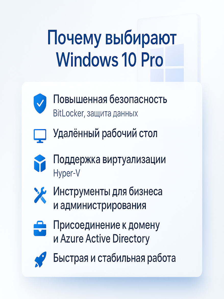 Купить Ключ активации Windows 10 Pro Лицензия Microsoft (Русский язык, Активация Онлайн)