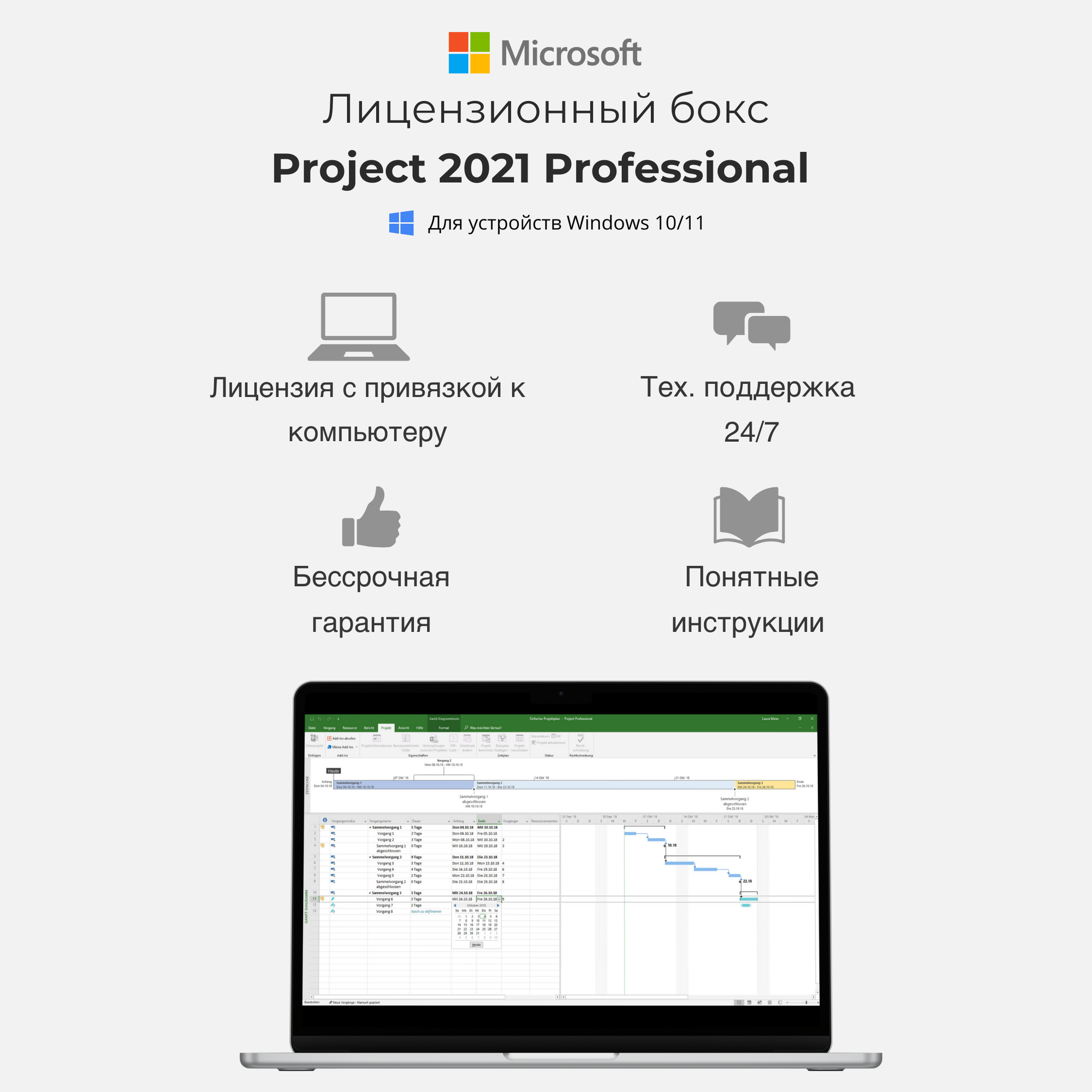 Купить Microsoft Project 2021 Professional, для 1 ПК, Бессрочная лицензия, Онлайн активация, Box Slider