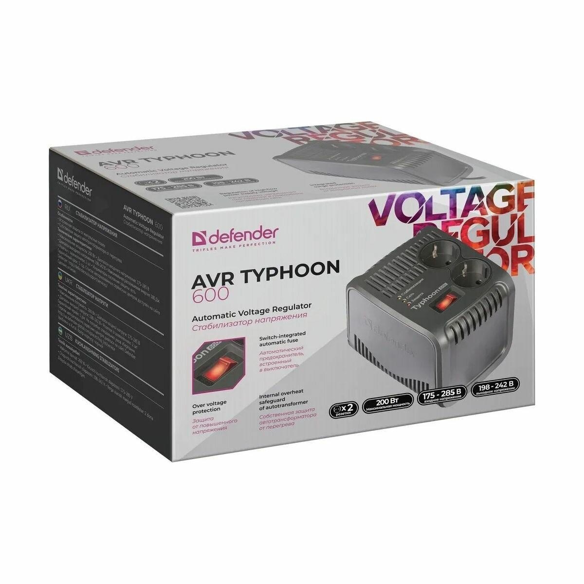 Купить Стабилизатор напряжения Defender AVR Typhoon 600, 200 Вт, 2 розетки 99032
