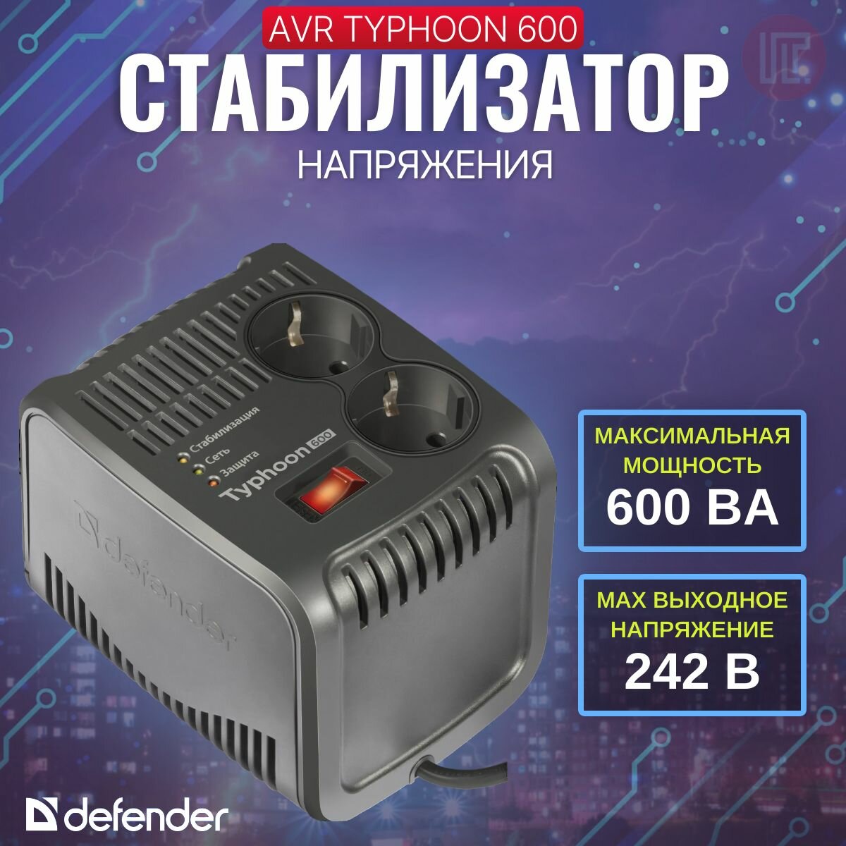 Стабилизатор напряжения Defender AVR Typhoon 600, 200 Вт, 2 розетки 99032 интересное: