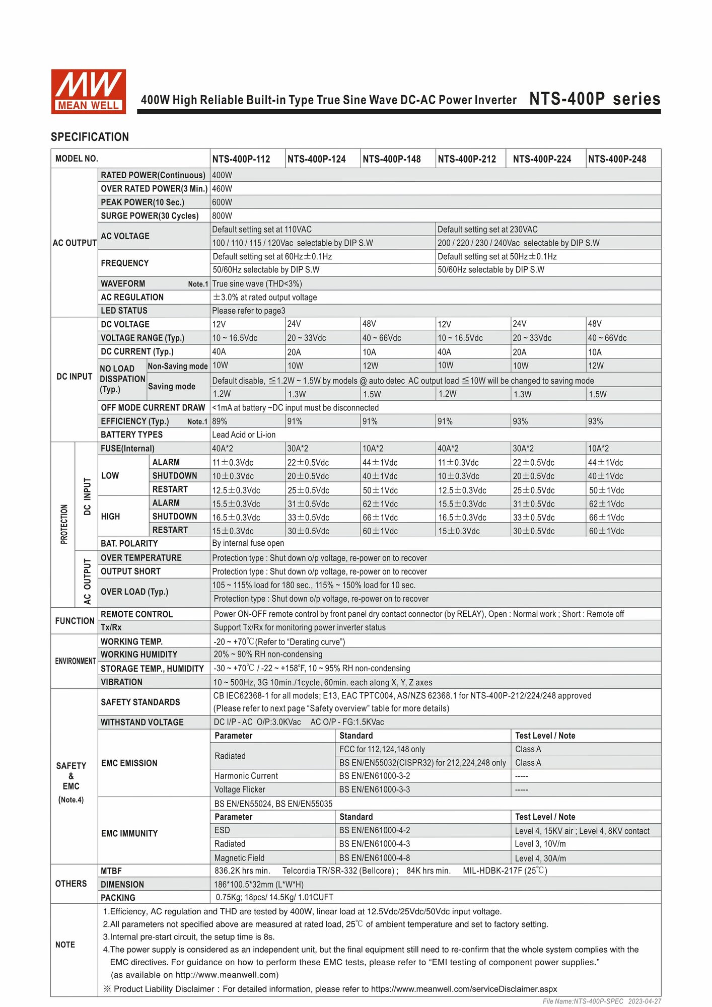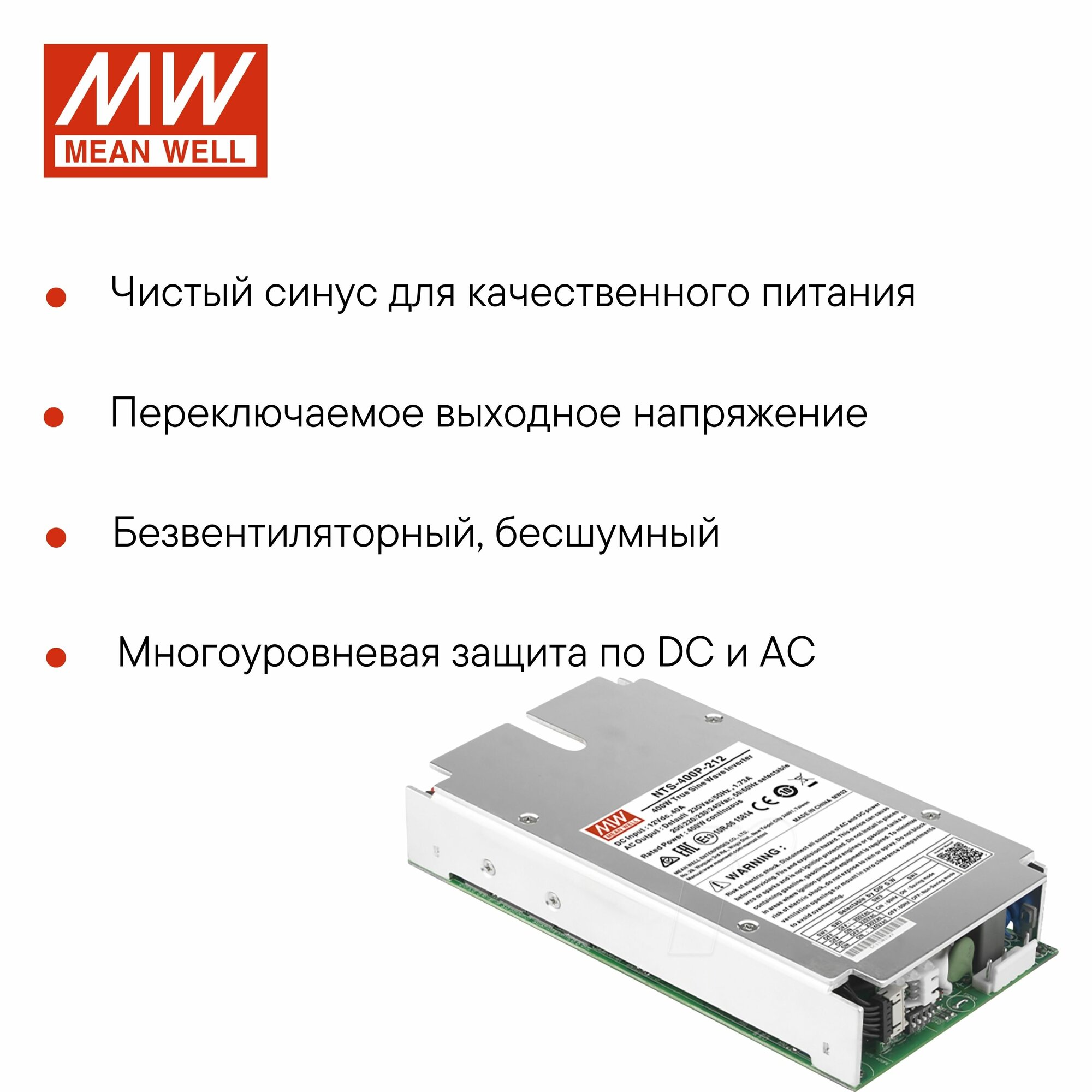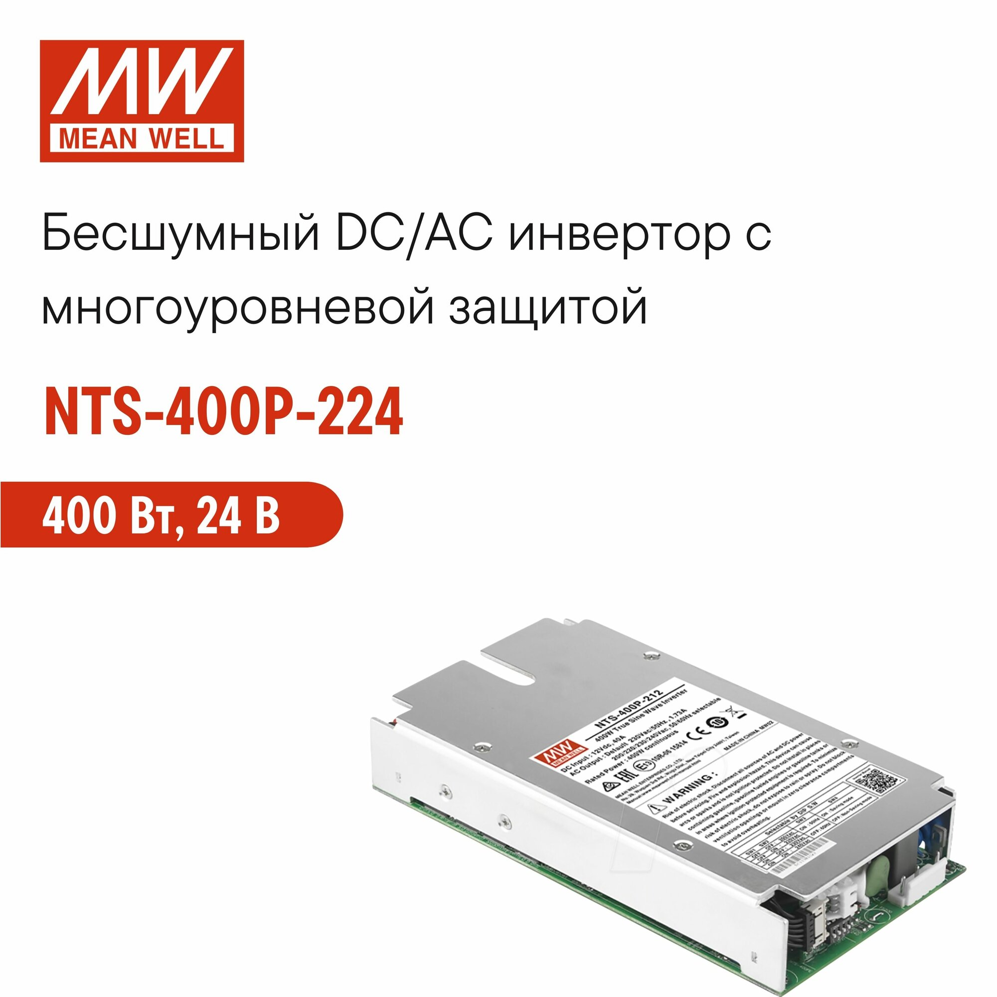 Инвертор MEAN WELL NTS-400P-224, резервный ИБП, 400 Ватт, 24-230V интересное: