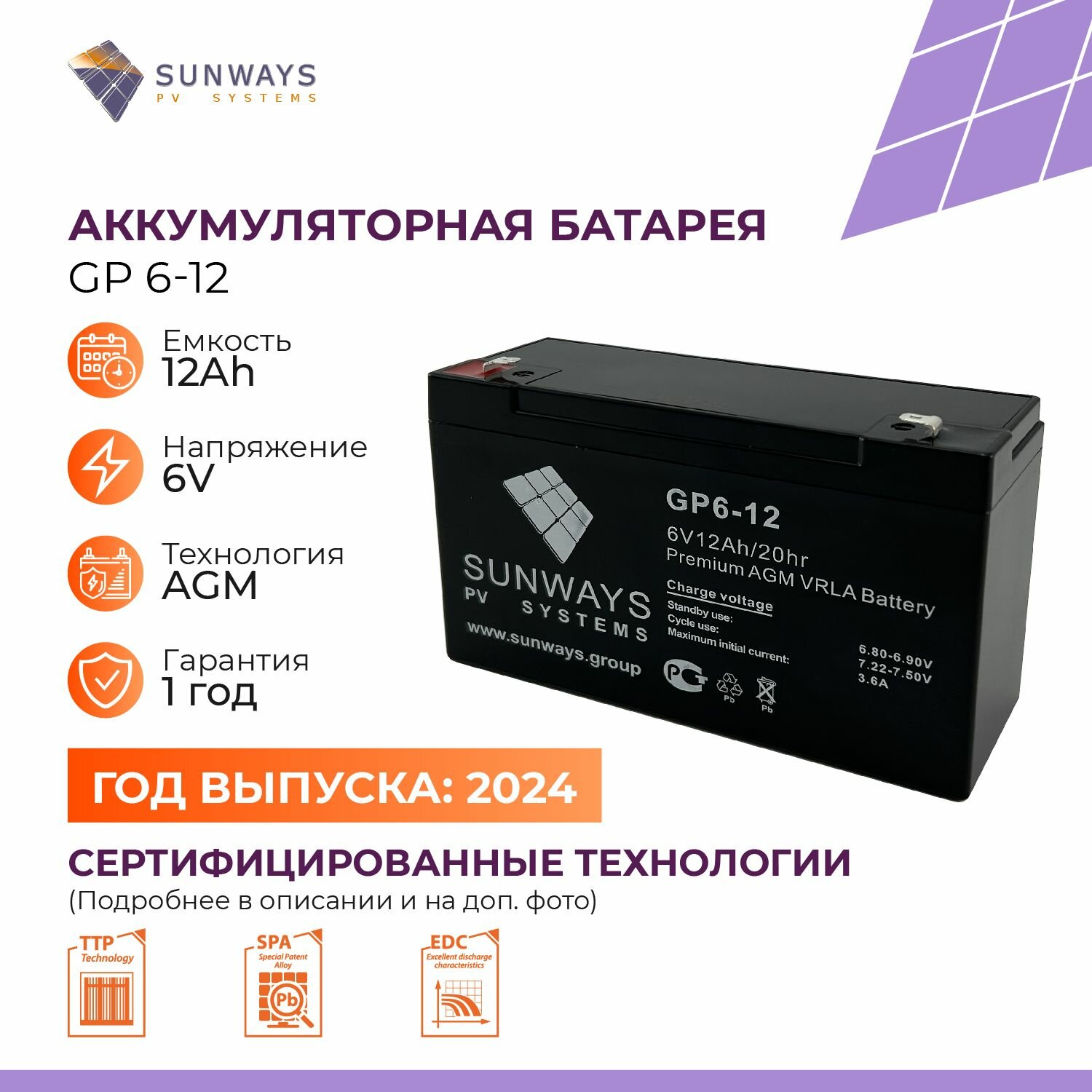 Купить Аккумуляторная батарея SUNWAYS GP 6-12, Аккумулятор для ИБП