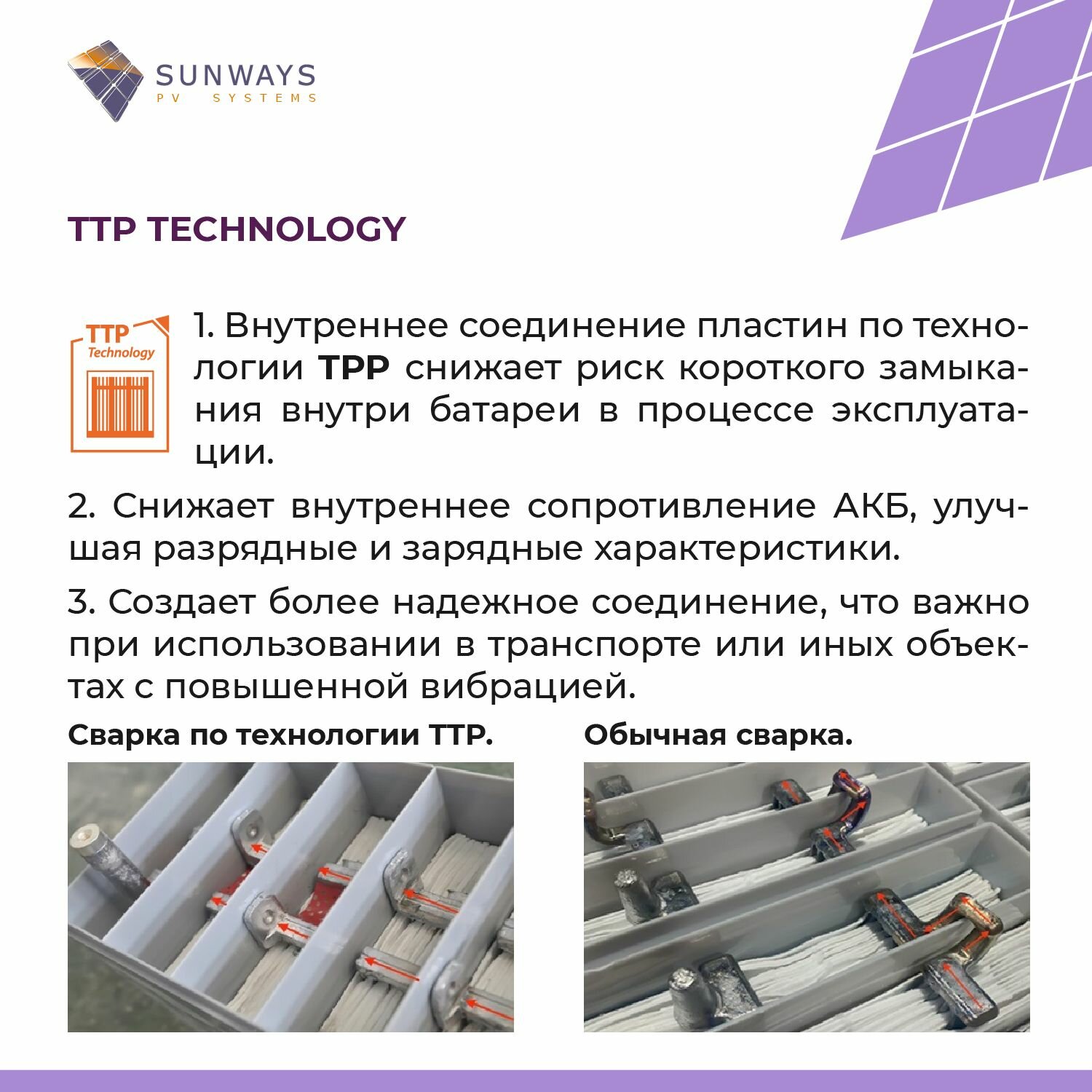 Аккумулятор SUNWAYS GP 12В 100Ач (12V 100Ah), тяговый аккумулятор, для ИБП, 1 шт