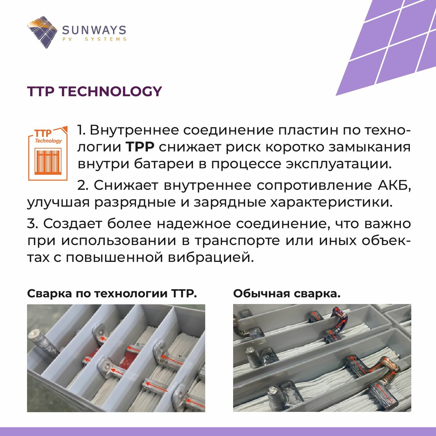 Аккумулятор SUNWAYS GP 12В 100Ач (12V 100Ah), тяговый аккумулятор, для ИБП, 1 шт