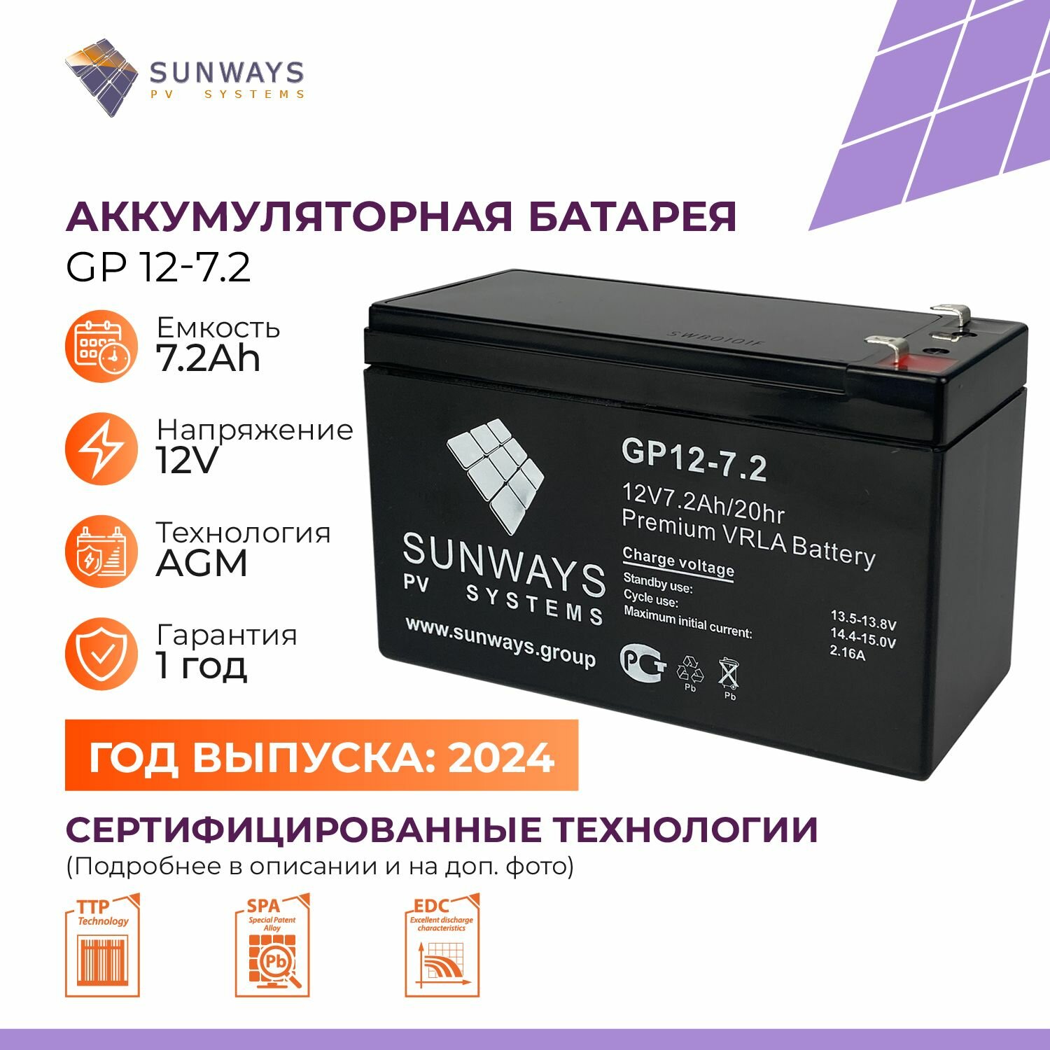 Купить Аккумулятор SUNWAYS GP 12В 7,2 Ач, Аккумулятор для ИБП
