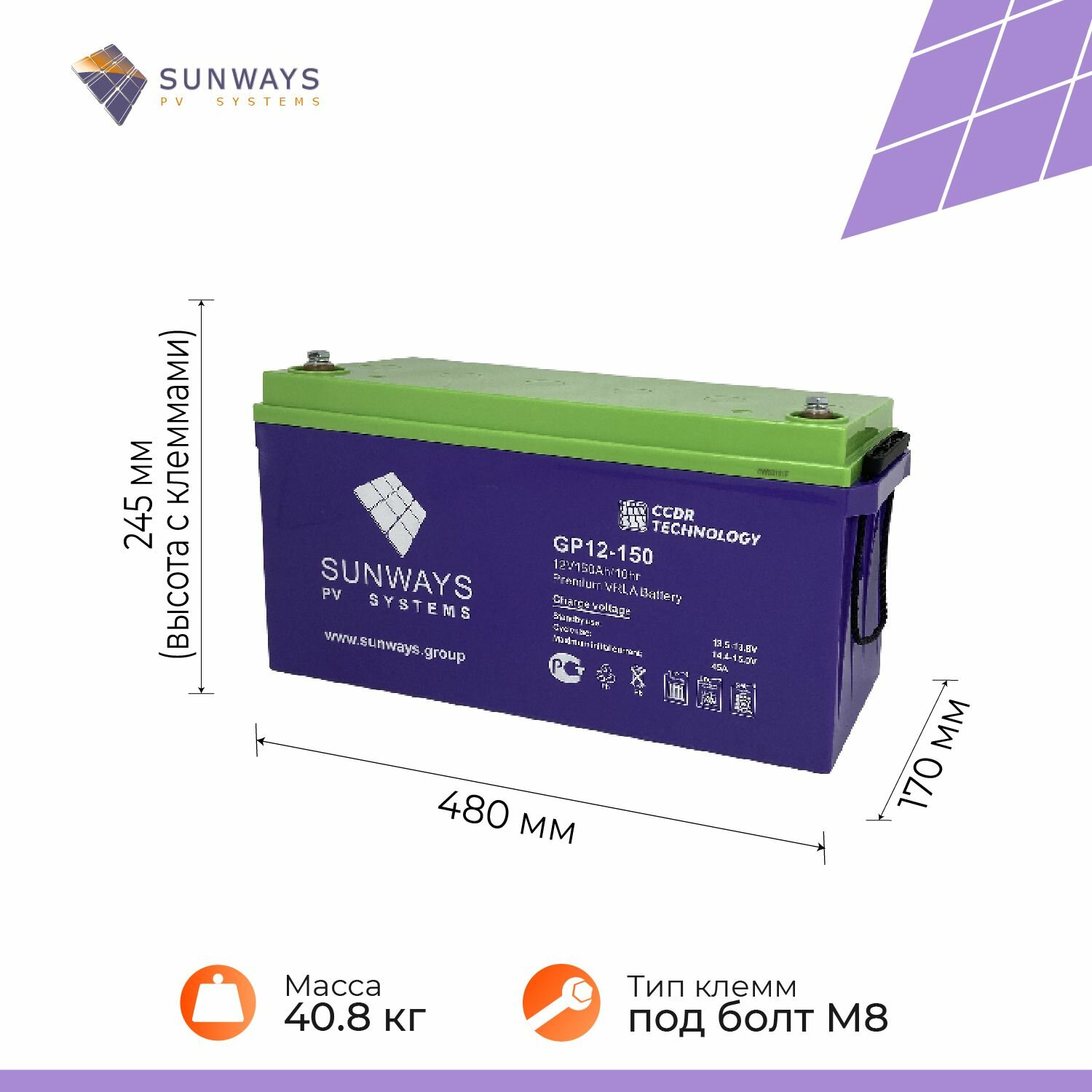 Купить Аккумулятор SUNWAYS GP 12В 150Ач (12V 150Ah), тяговый аккумулятор, для ИБП, 1 шт