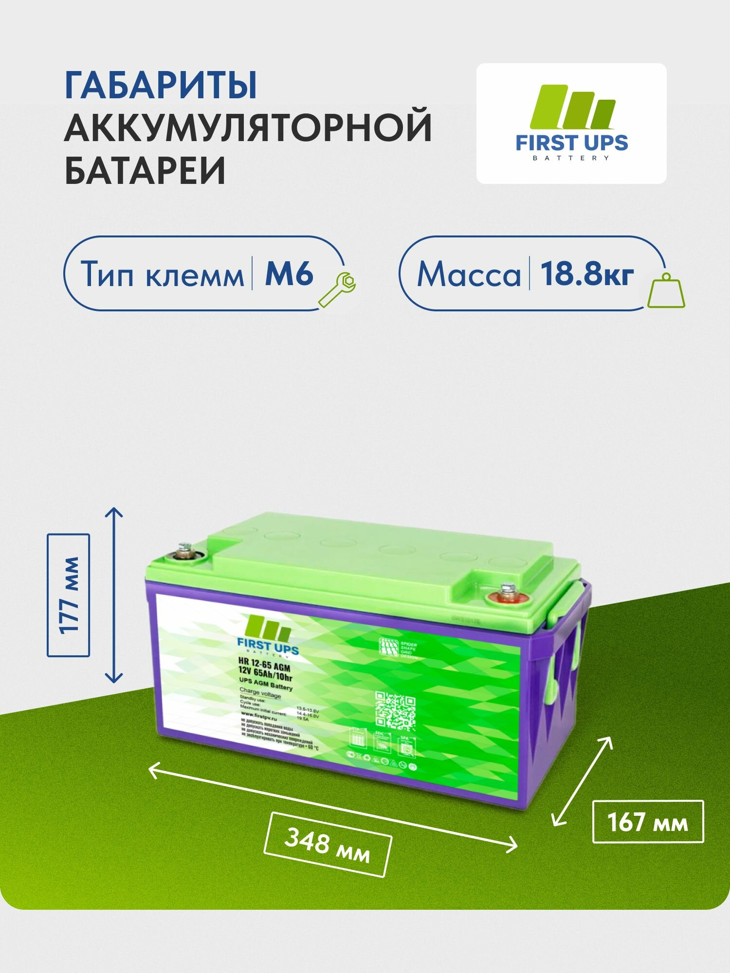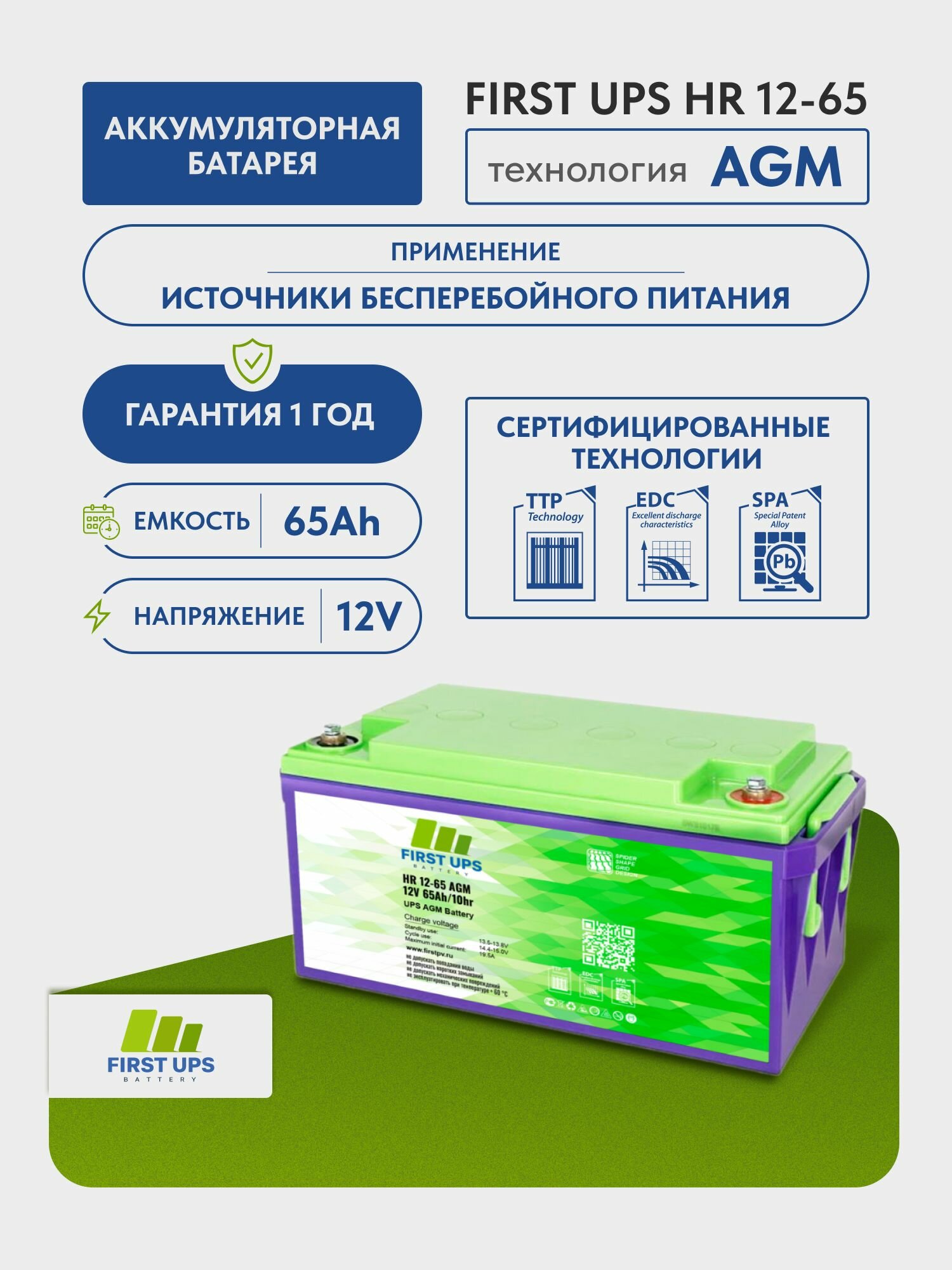 Купить Аккумулятор FIRST UPS HR 12-65 AGM, 12 В, 65 Ач, 348x177x167 мм, 1 шт.