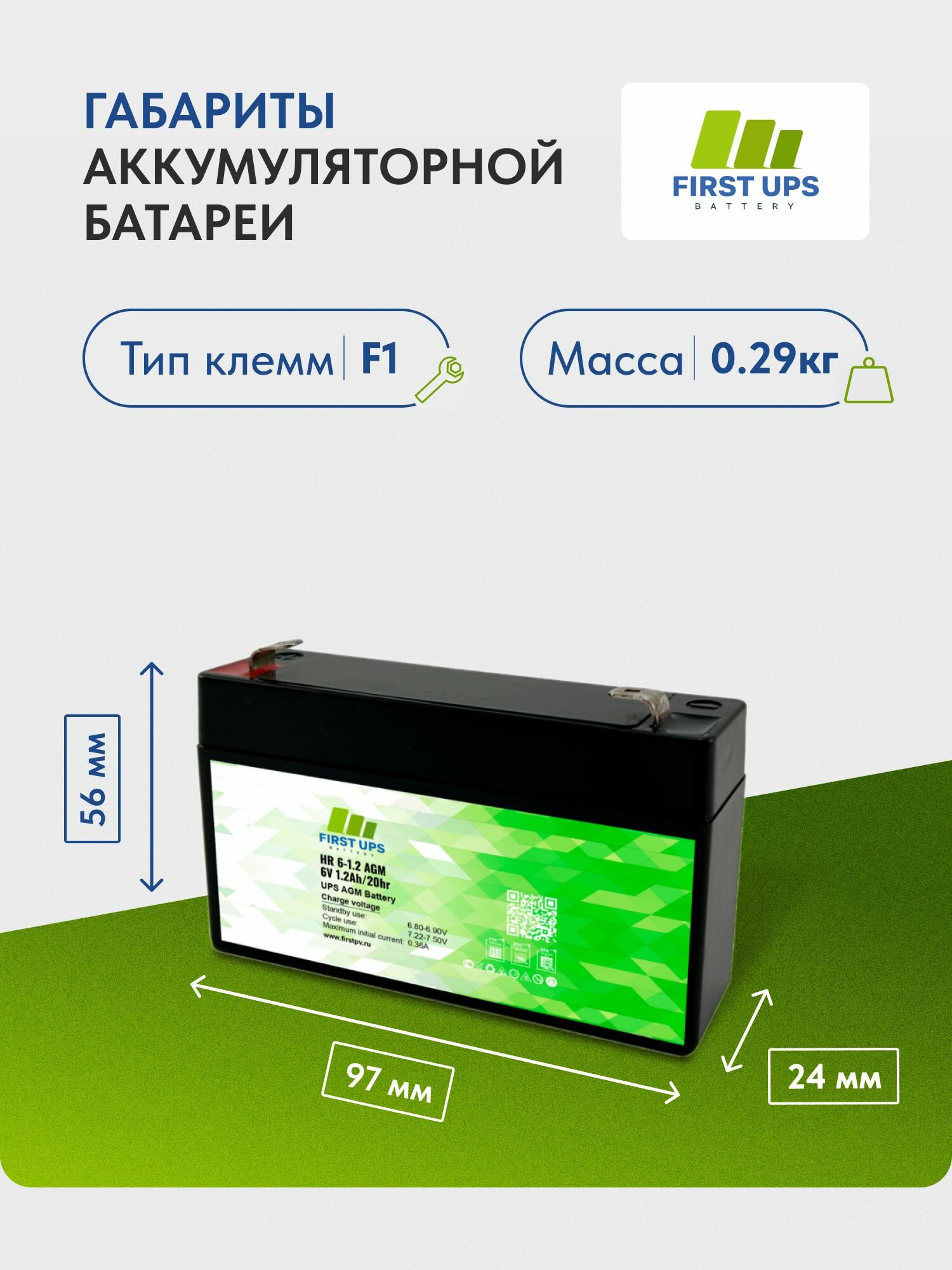 Купить Аккумулятор FIRST UPS HR 6-1.2 AGM, 6 В, 1,2 Ач, 97x56x24 мм, 1 шт.