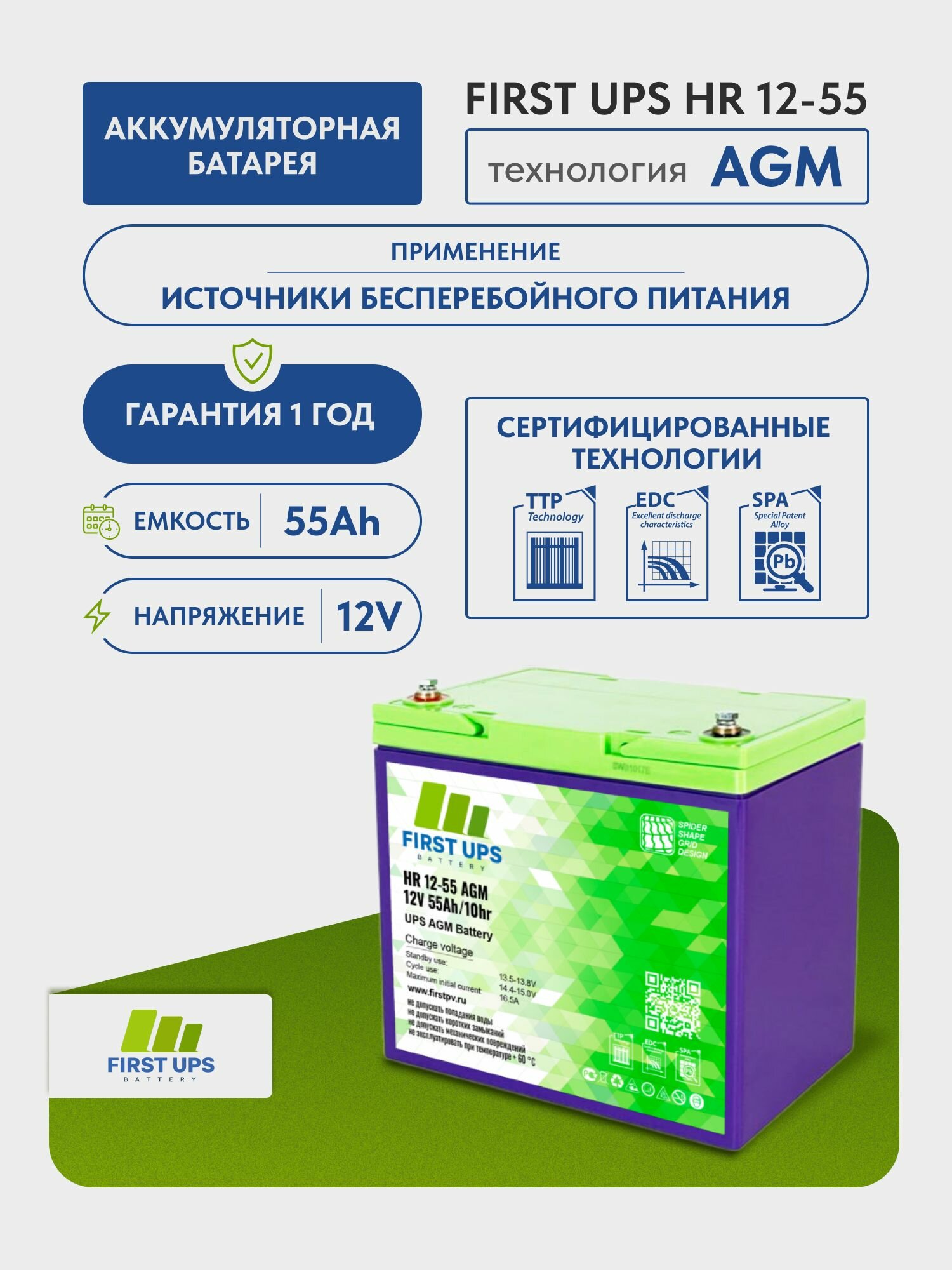 Купить Аккумулятор FIRST UPS HR 12-55 AGM, 12 В, 55 Ач, 230x215x138 мм, 1 шт.