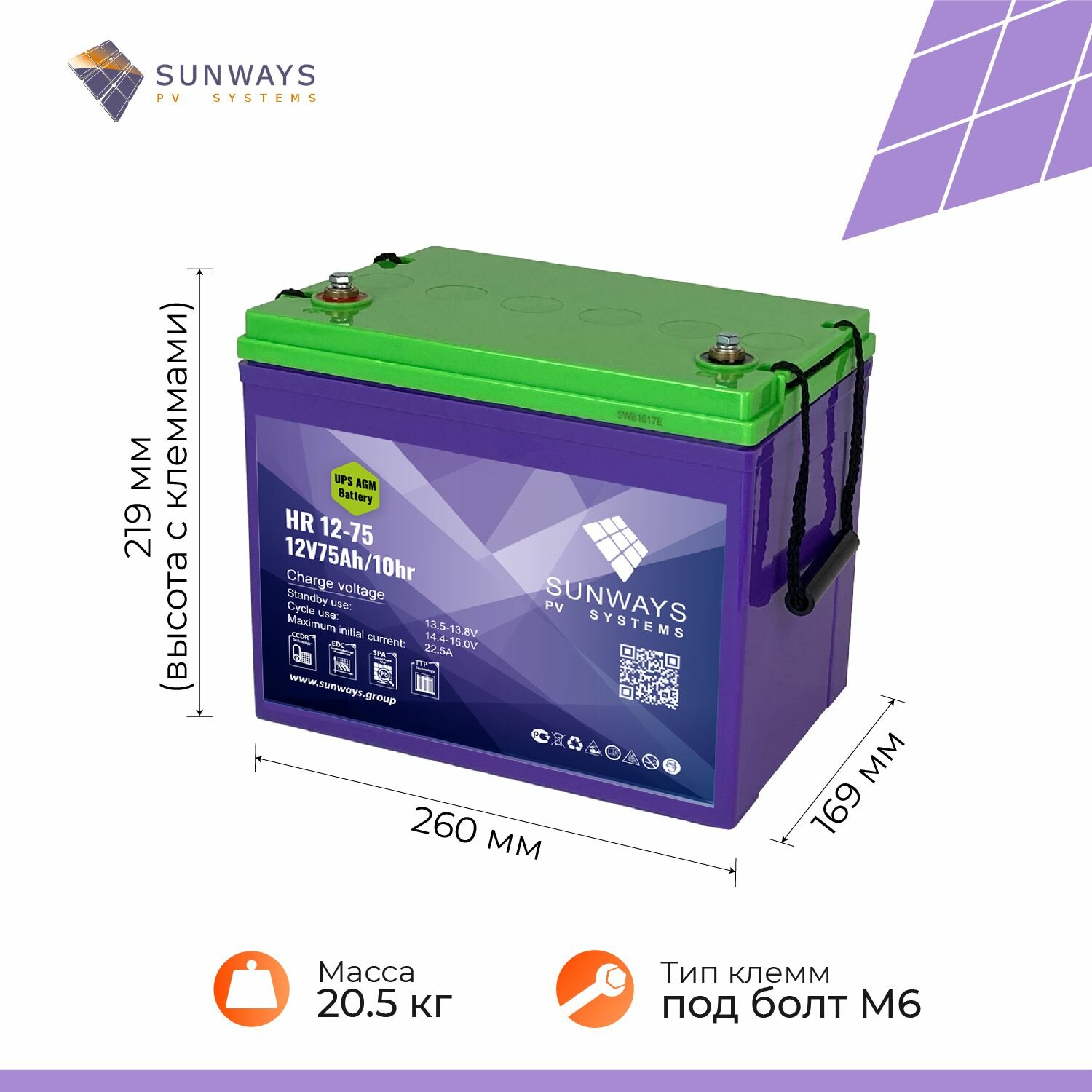 Купить Аккумулятор для ИБП SUNWAYS UPS HR 12В 75Ач (12V 75Ah), High Rate, 1 шт