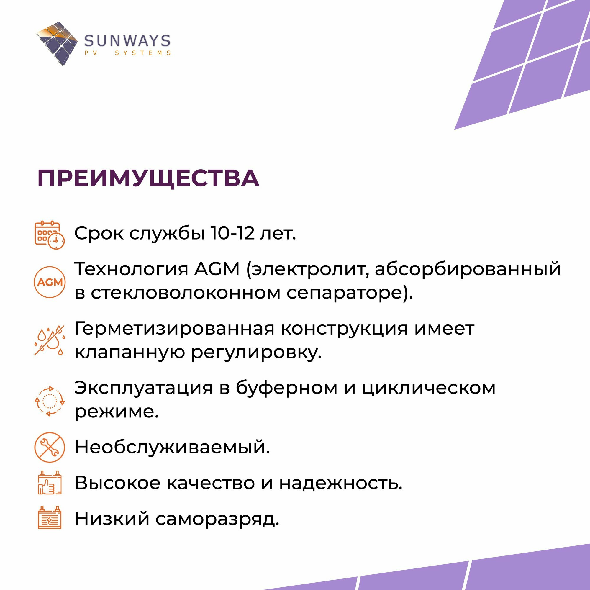 Аккумулятор для ИБП SUNWAYS UPS HR 12В 45Ач (12V 45Ah), High Rate, 1 шт