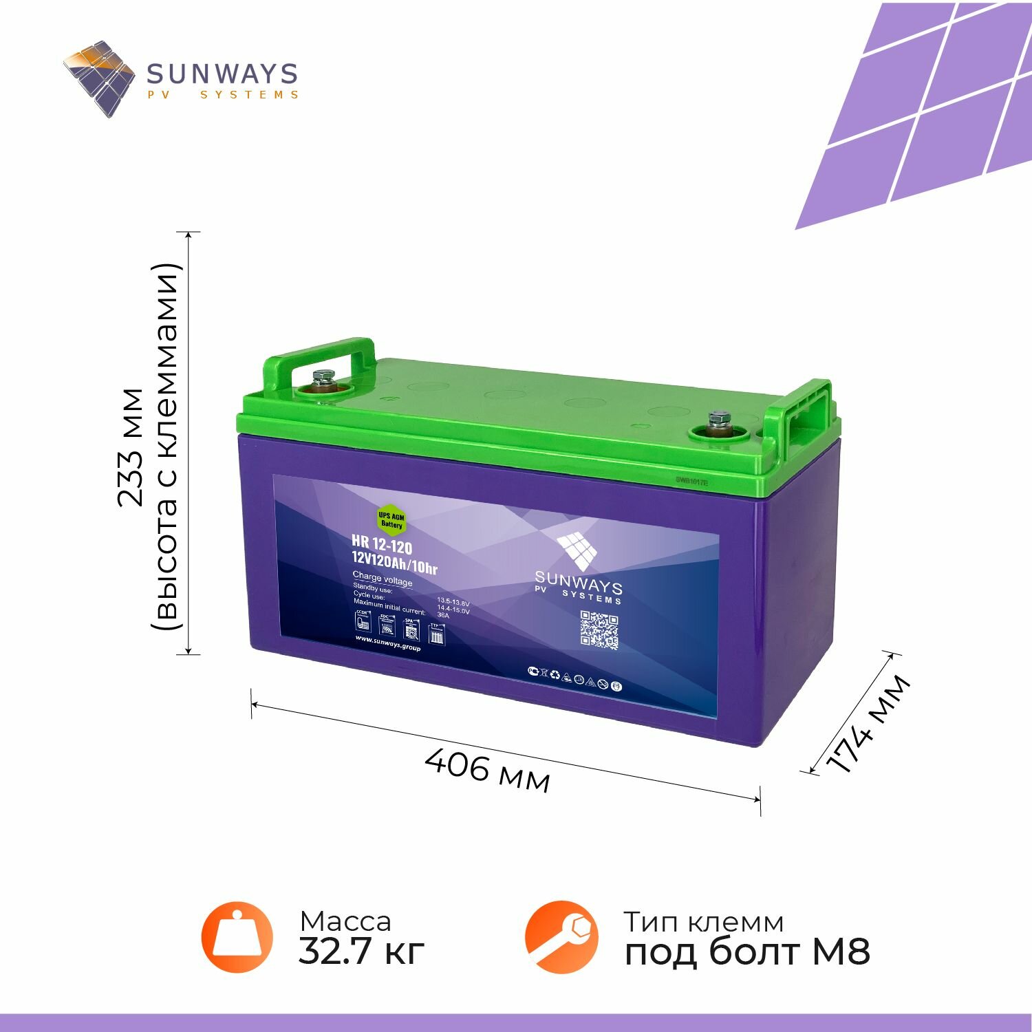 Купить Аккумулятор для ИБП SUNWAYS UPS HR 12В 120Ач (12V 120Ah), High Rate, 1 шт
