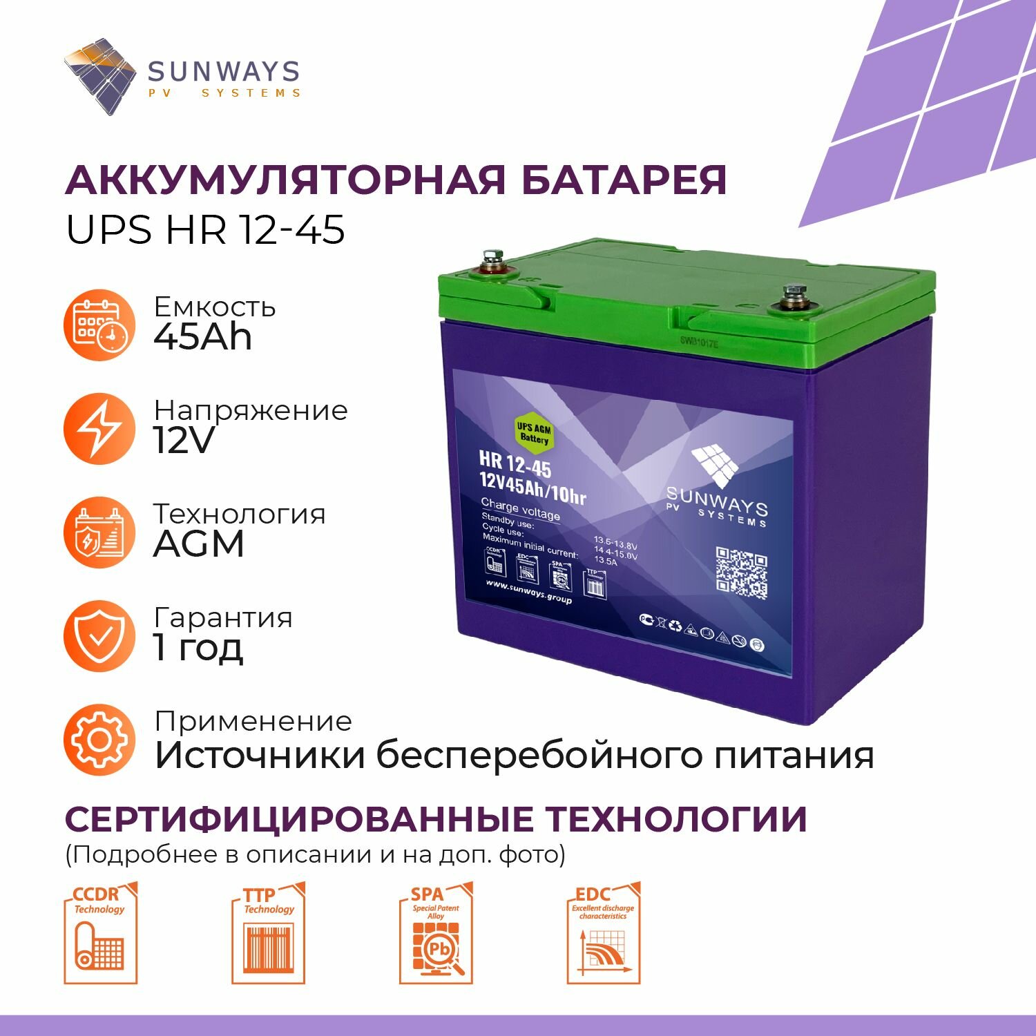 Купить Аккумулятор для ИБП SUNWAYS UPS HR 12В 45Ач (12V 45Ah), High Rate, 1 шт