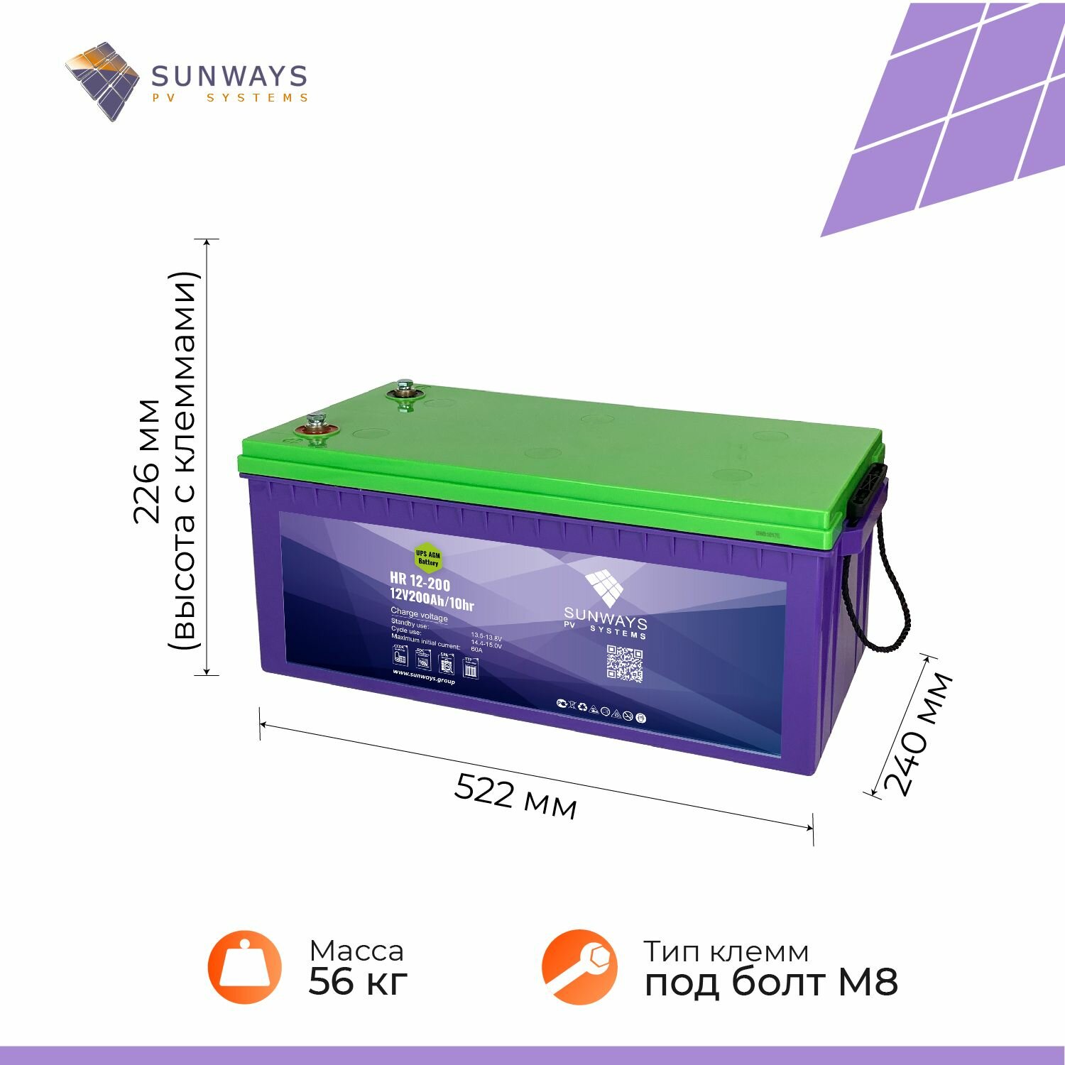 Купить Аккумулятор для ИБП SUNWAYS UPS HR 12В 200Ач (12V 200Ah), High Rate, 1 шт