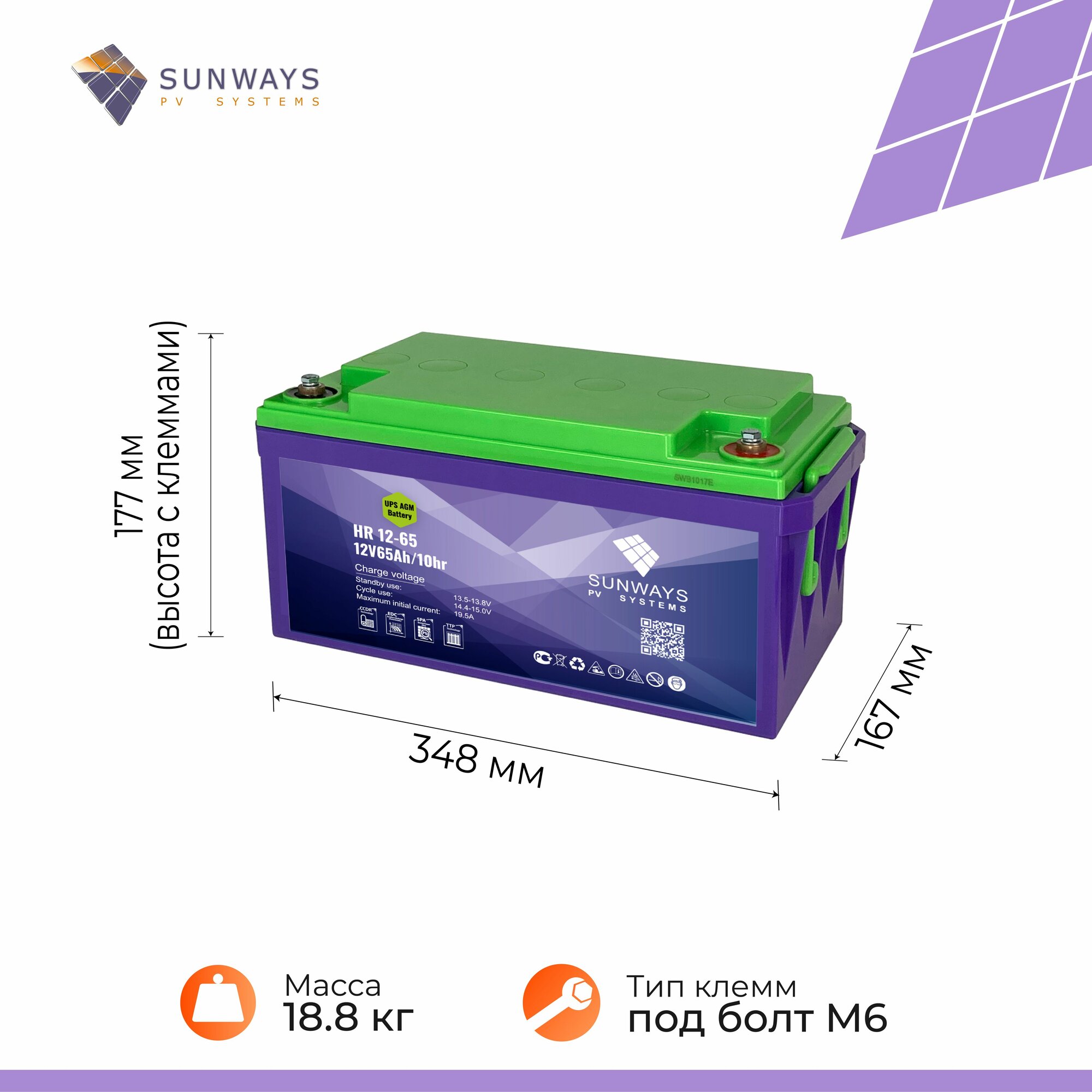 Купить Аккумулятор для ИБП SUNWAYS UPS HR 12В 65Ач (12V 65Ah), High Rate, 1 шт