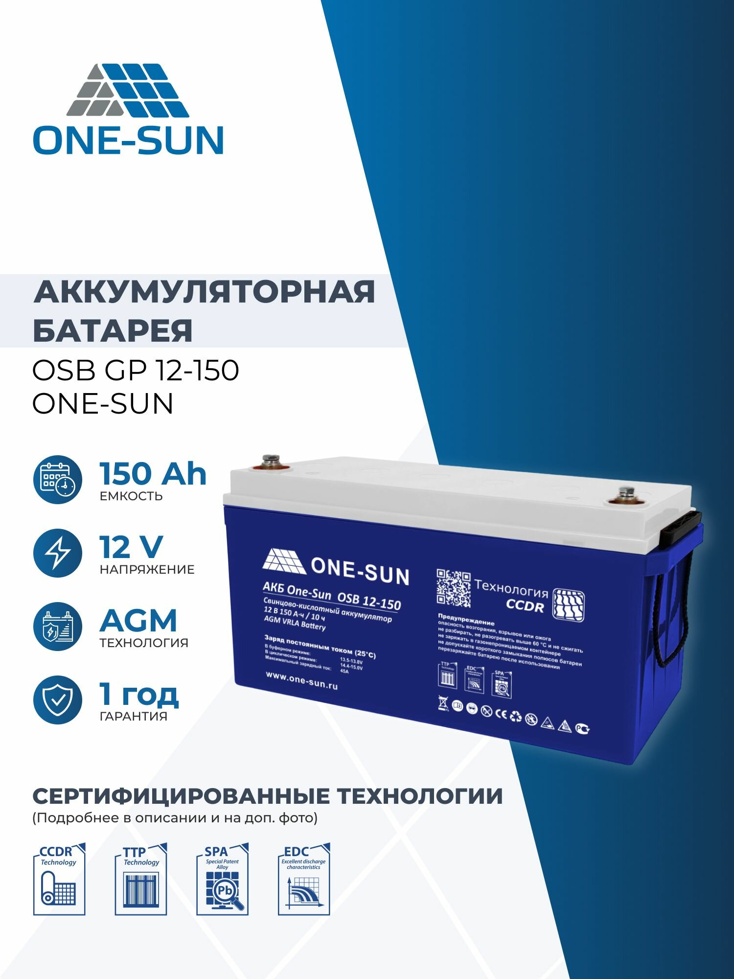 Аккумулятор ONE-SUN OSB GP 12В 150Ач (12V 150Ah), тяговый аккумулятор, для ИБП, 1 шт. интересное: