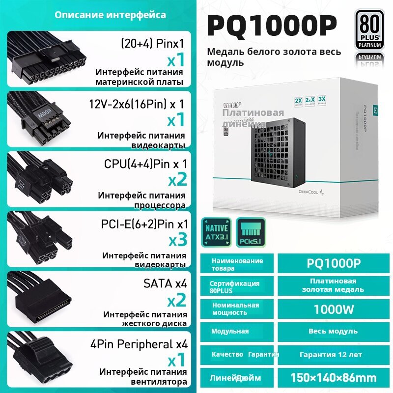 Блок питания Deepcool PQ1000P 1000W 80+ Platinum ATX 3.1/ PCIE5.1/черный интересное: