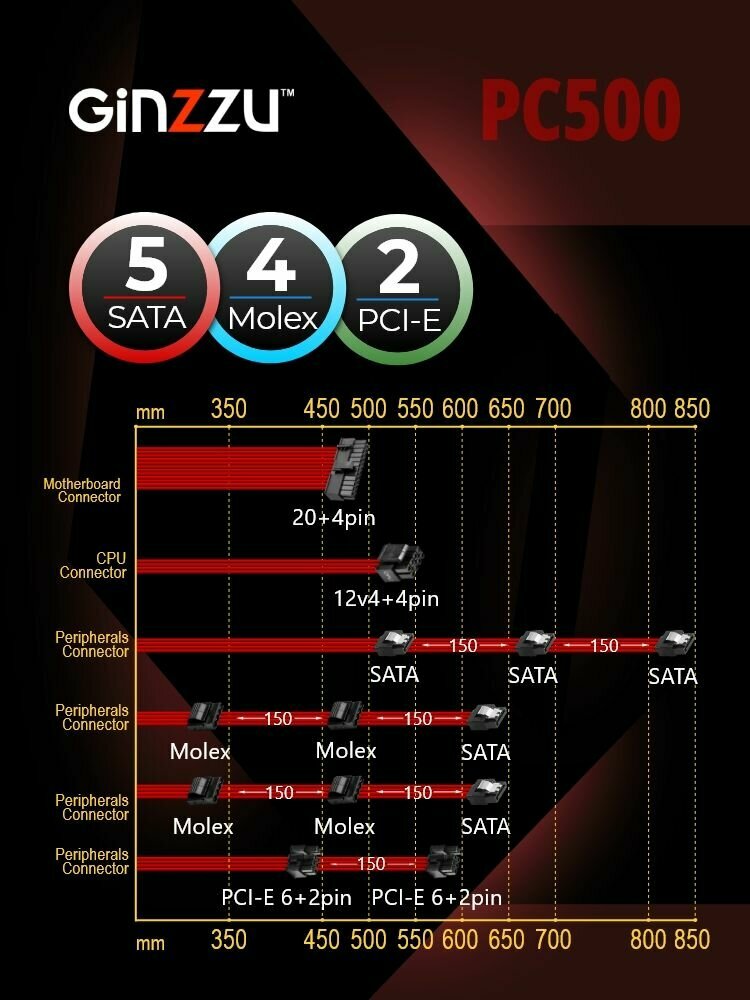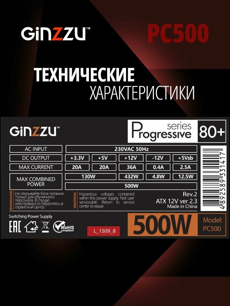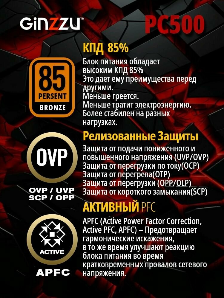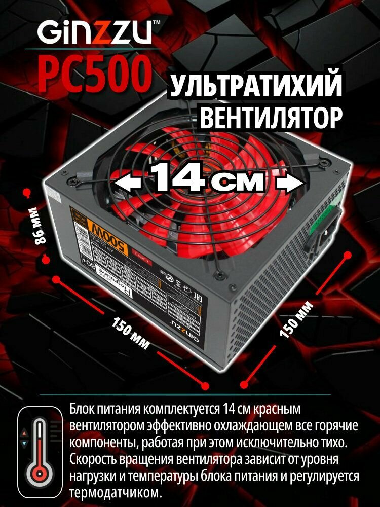 Блок питания Ginzzu PC500 14CM 80+. Гарантия 3 года. интересное: