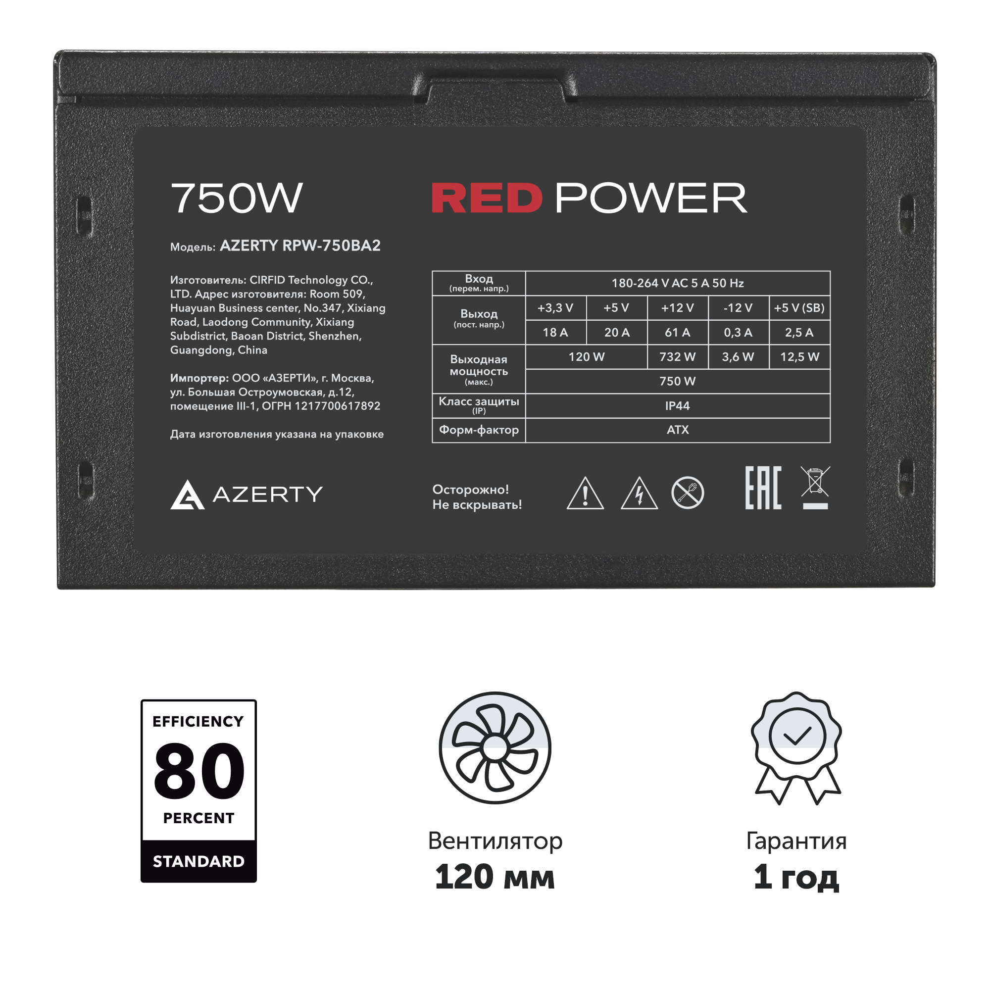 Блок питания компьютера Azerty RPW-750BA2 (750 W) 80+ интересное: