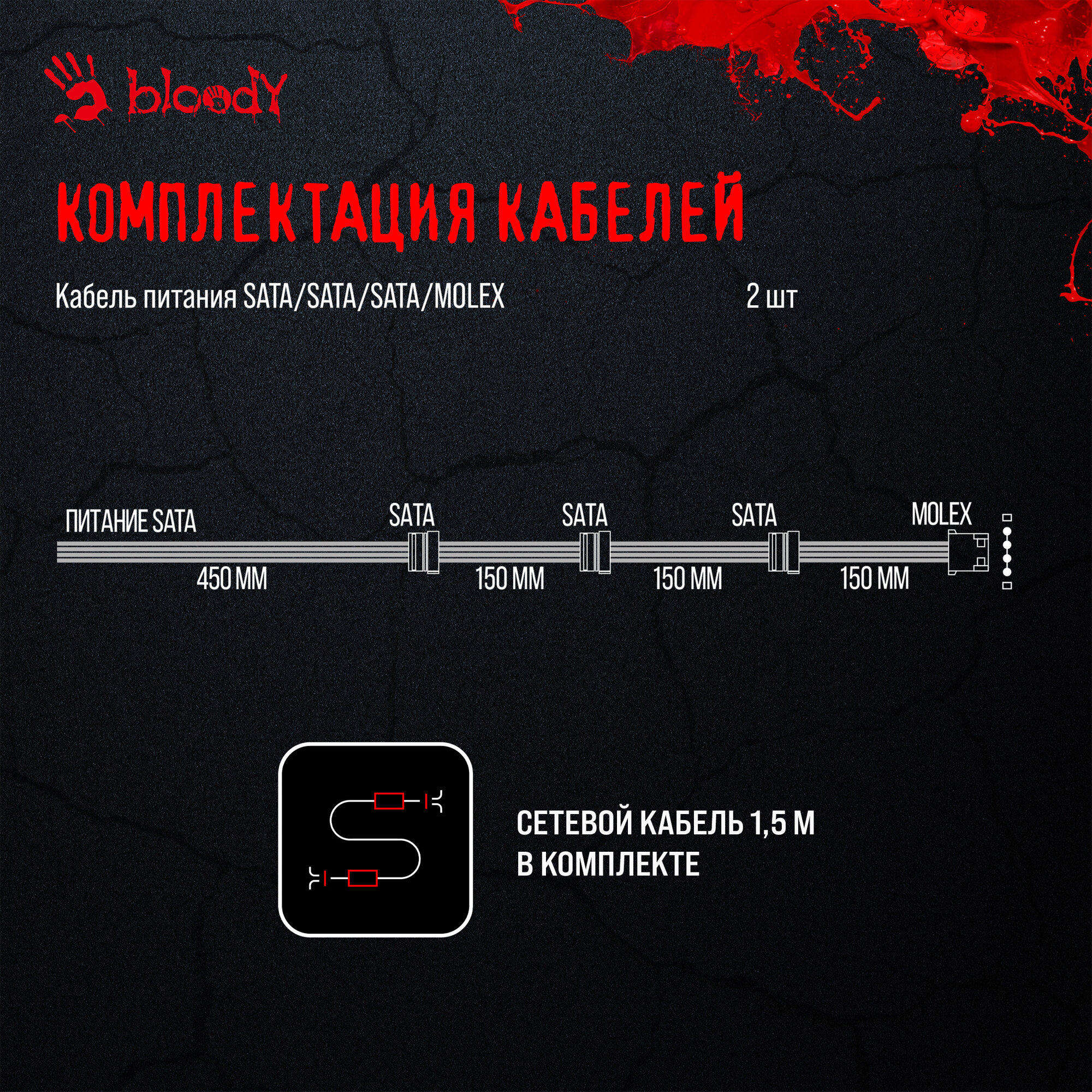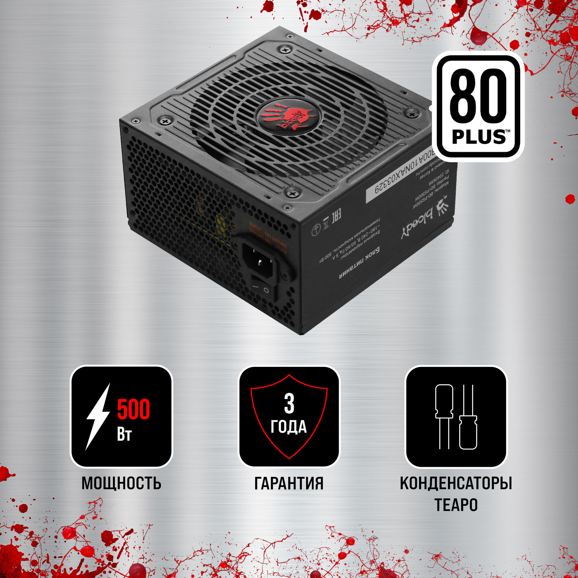 Блок питания BLOODY черного цвета BD-PS500W, ATX, мощность 500W, стандарт 80+ white интересное: