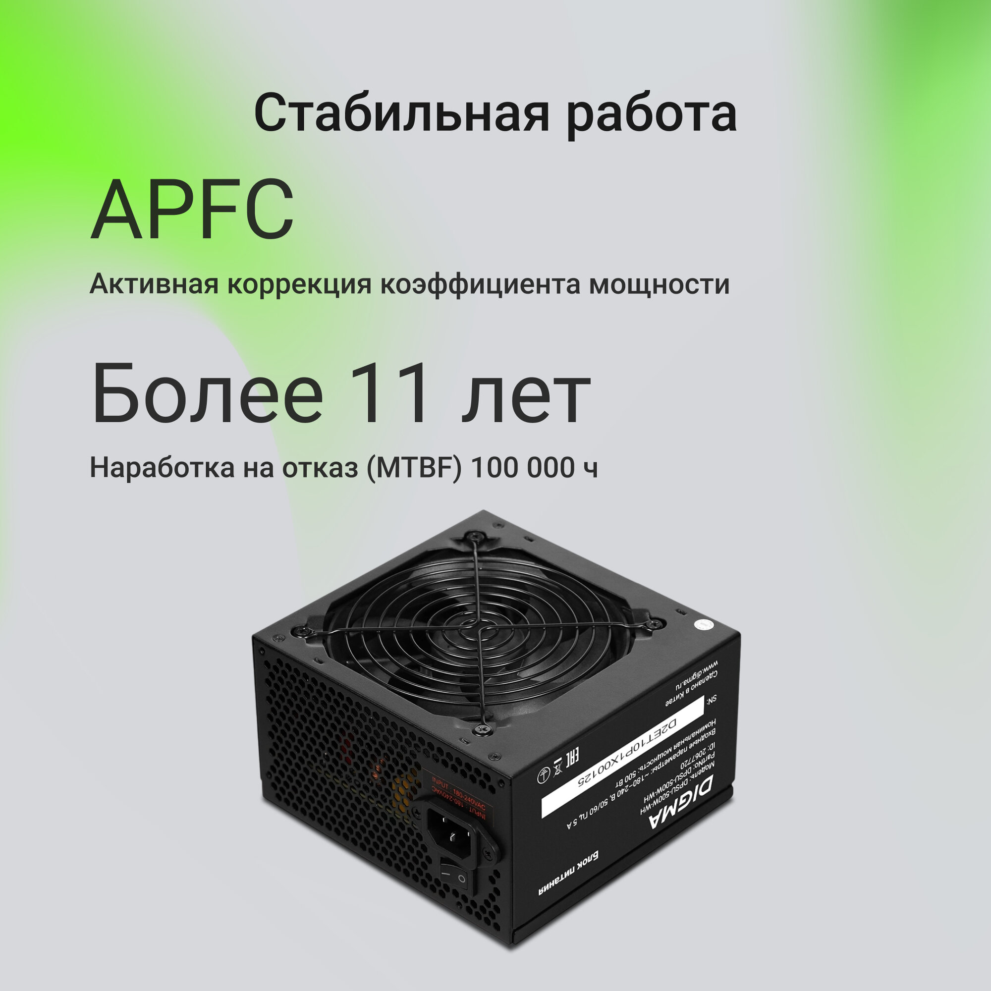 Блок питания Digma DPSU-500W-WH 500Вт, 80 PLUS WHITE, терморегулятор оборотов интересное: