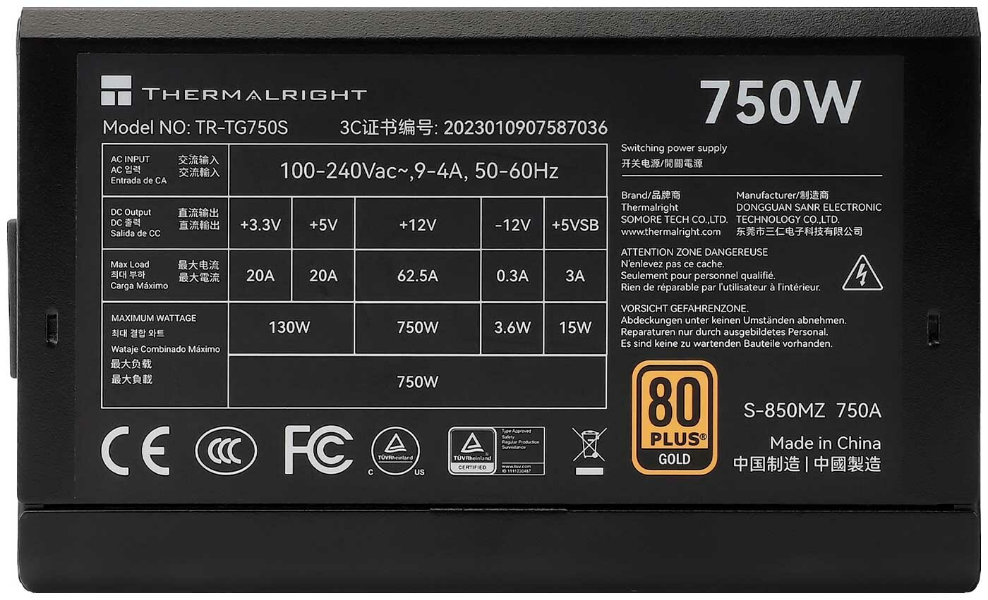 Купить Блок питания Thermalright 750W Gold ATX 3.0 (TR-TG 750S)