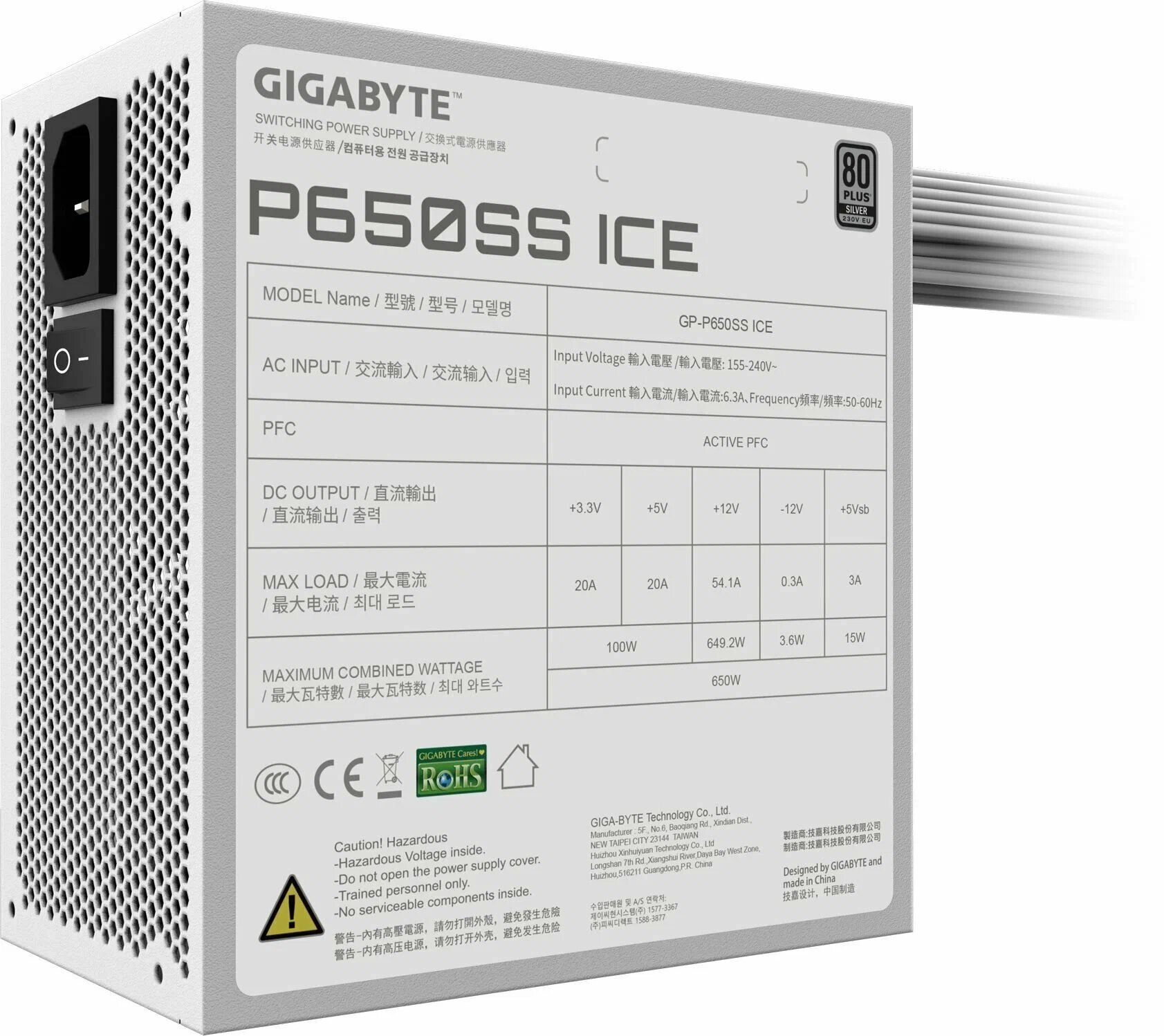 Купить Блок питания Gigabyte GP-P650SS ICE 650 Вт, 80+ Silver, APFC, 20+4 pin, 2 x 4+4 pin CPU, 5 SATA, 2 x 6+2 pin PCI-E