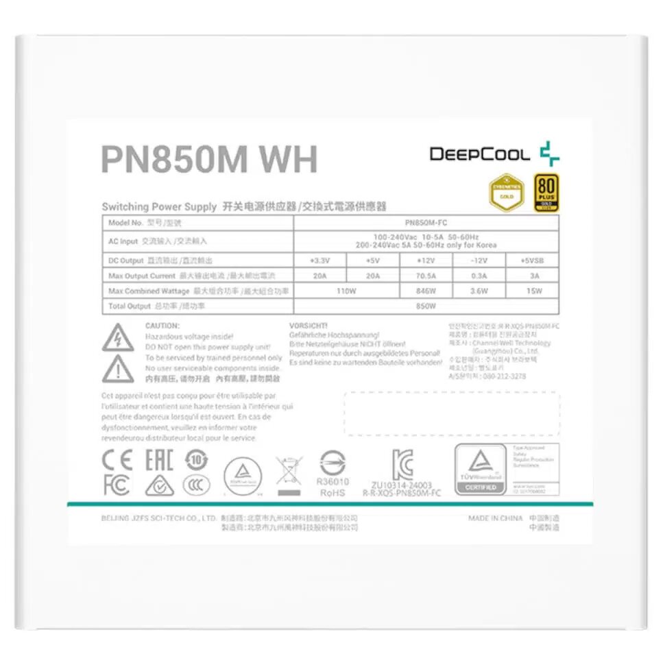 Ниже Вы можете прочитать отзывы на Блок питания Deepcool PN850M WH, 850W, 80+ Gold, ATX 3.1, белый, ознакомится с подробными характеристиками, посмотреть интересные обзоры и фотографии на Блок питания Deepcool PN850M WH, 850W, 80+ Gold, ATX 3.1, белый.
