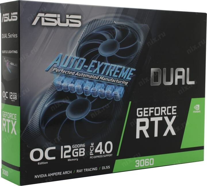 Видеокарта GeForce ASUS NVIDIA GeForce RTX 3060 (PCI-E 16x 4.0, LHR 12G 192бит GDDR6) DUAL-RTX3060-O12G-V2 интересное:
