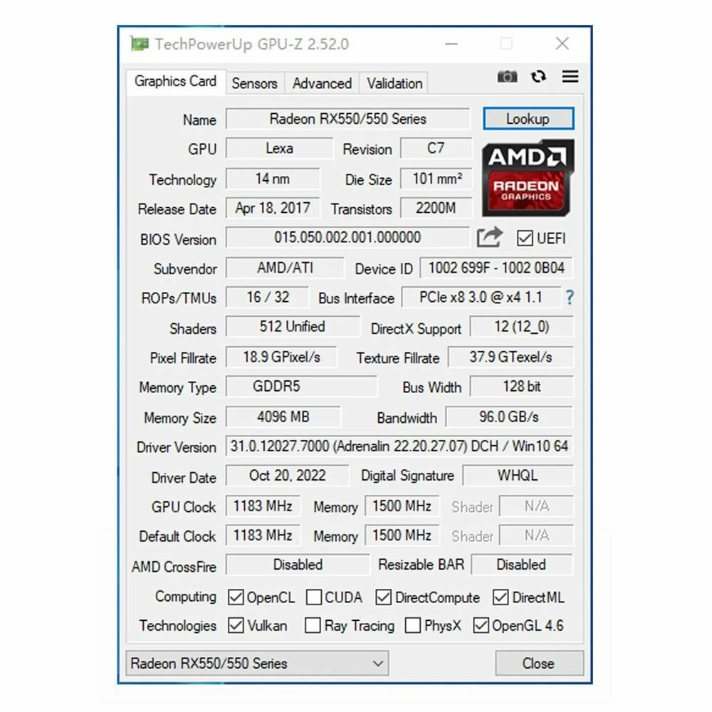 Видеокарта AMD Radeon RX550, 4ГБ, 128бит, 1 выход DisplayPort/DVI/HDMI интересное: