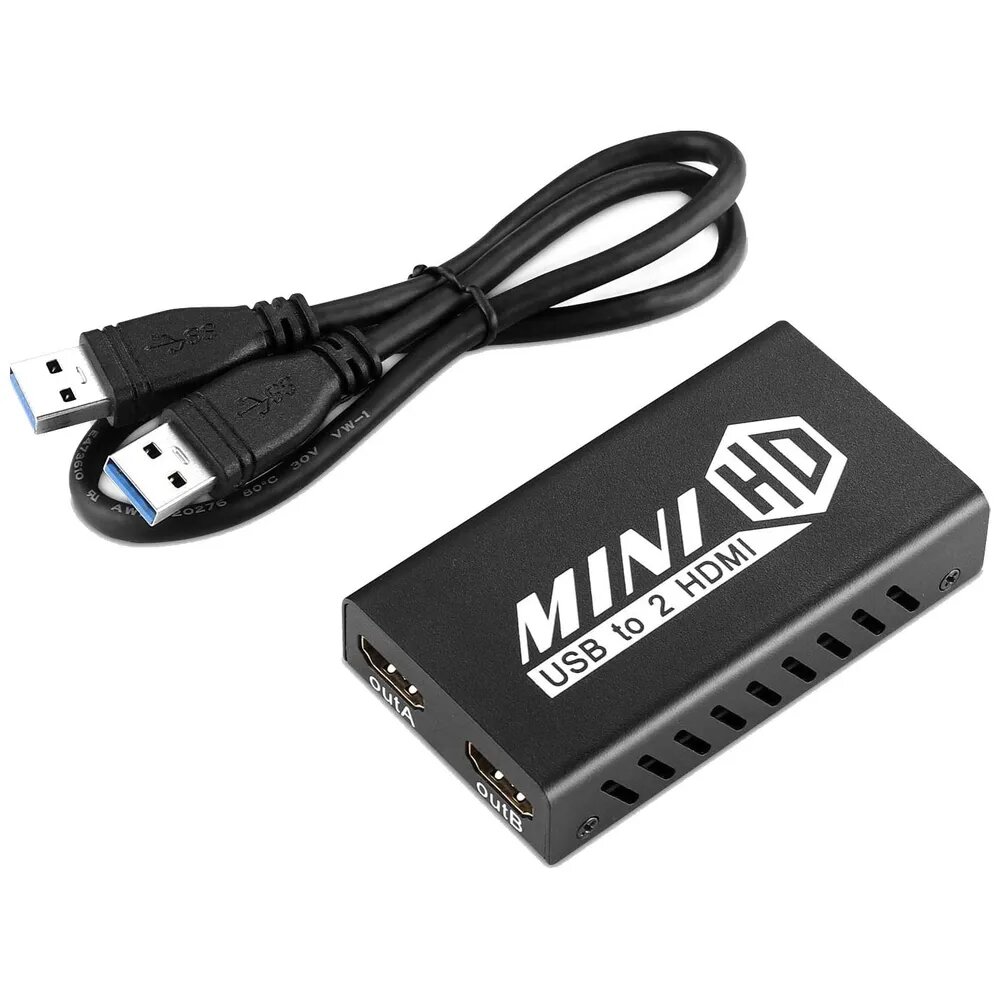 Купить Внешняя USB видеокарта 1080p 60Hz на два монитора HDMI расширение рабочего стола + дублирование экрана для смартфона