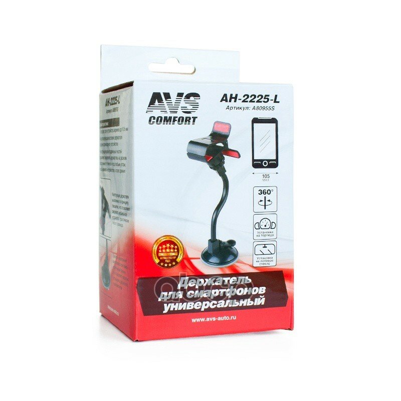 Держатель смартфона и навигатора универсальный avs ah-2225-l прищепка на длинной ножке в блистере
