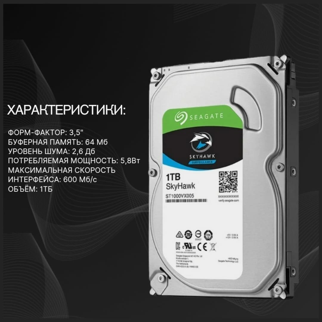 HDD Seagate SkyHawk ST1000VX000, 1ТБ, 3,5", 7200RPM, 64MB интересное: