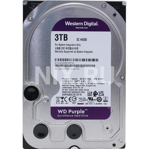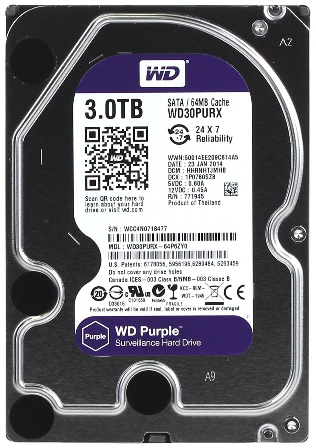 Купить 3ТБ Жесткий диск Western Digital Purple WD30PURX, для систем видеонаблюдения, 3.5", SATA III